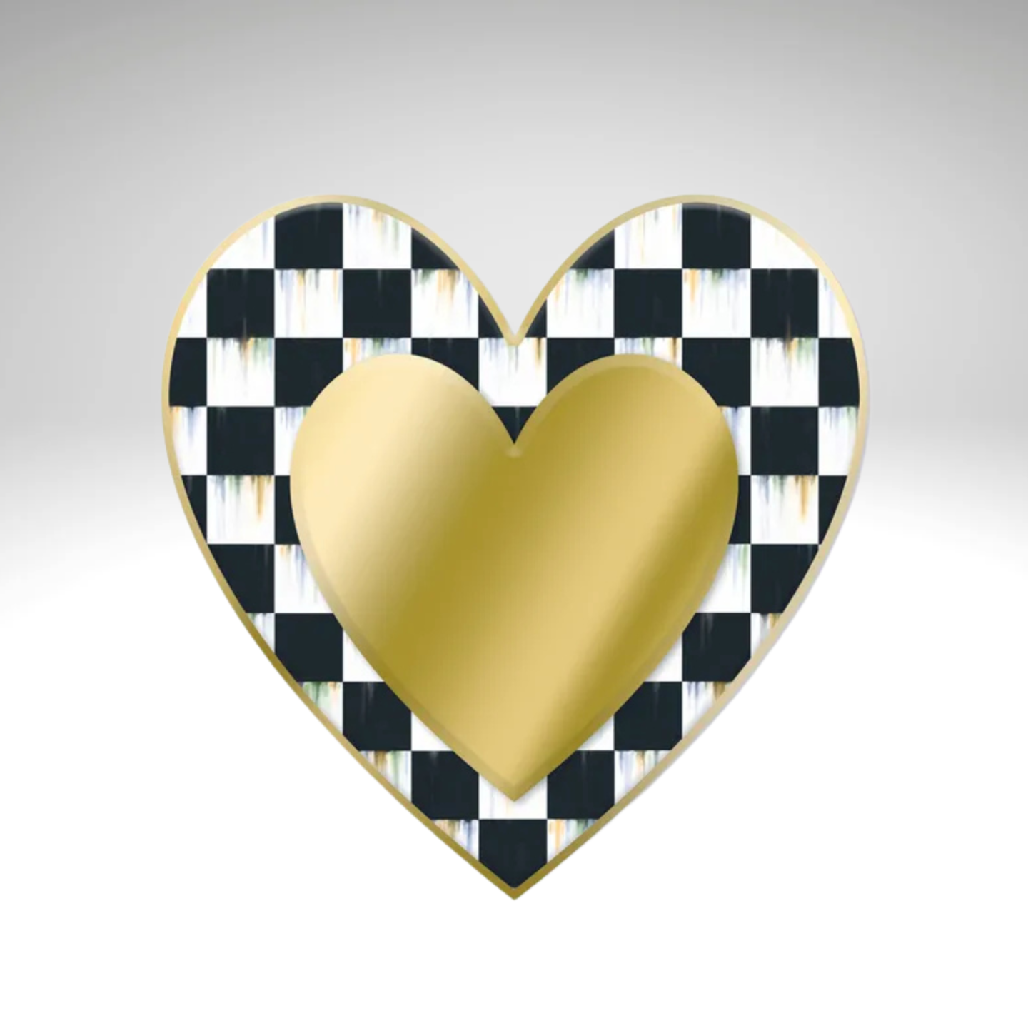 Gold Black White Checkered Metal Heart Sign – 12" Embossed Wall Decor