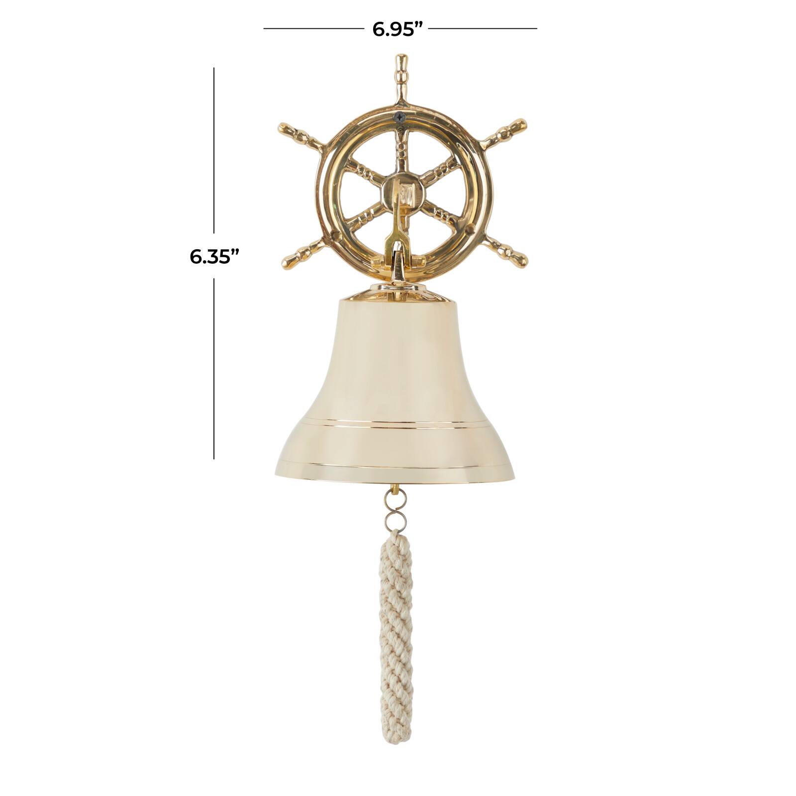 Gold Brass Bell Wall Decor with Ship wheel Backing 7" x 9" x 6"