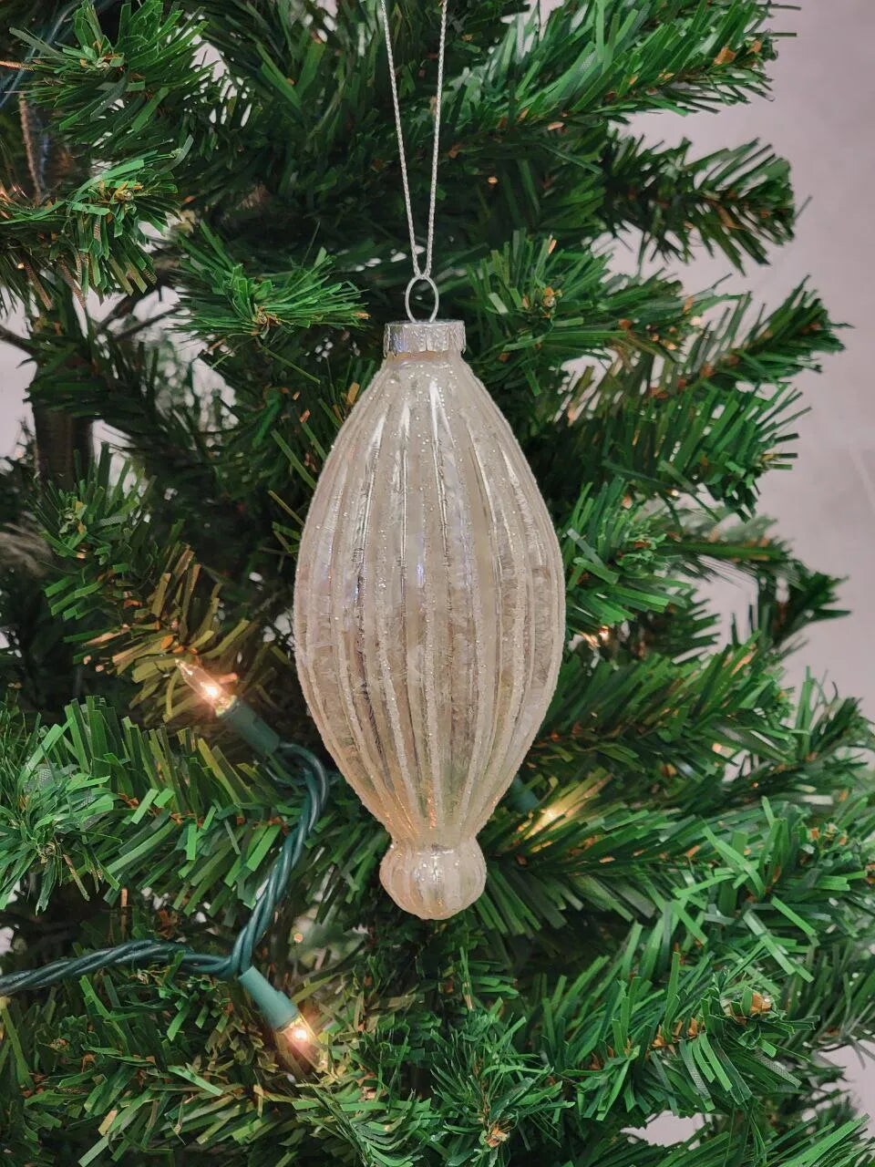 Gold Elongated Teardrop Glass Christmas Ornament