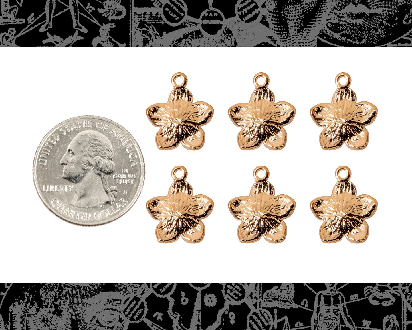 Gold Finish and Pink Enamel Flower Charms - Set of Six - XXX - ZG-C57