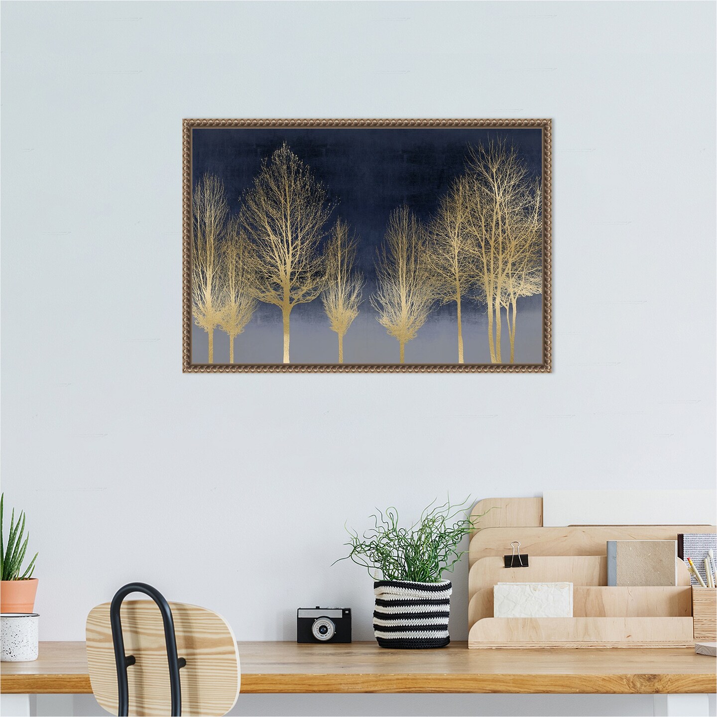 Gold Forest on Blue by Kate Bennett Framed Canvas Wall Art