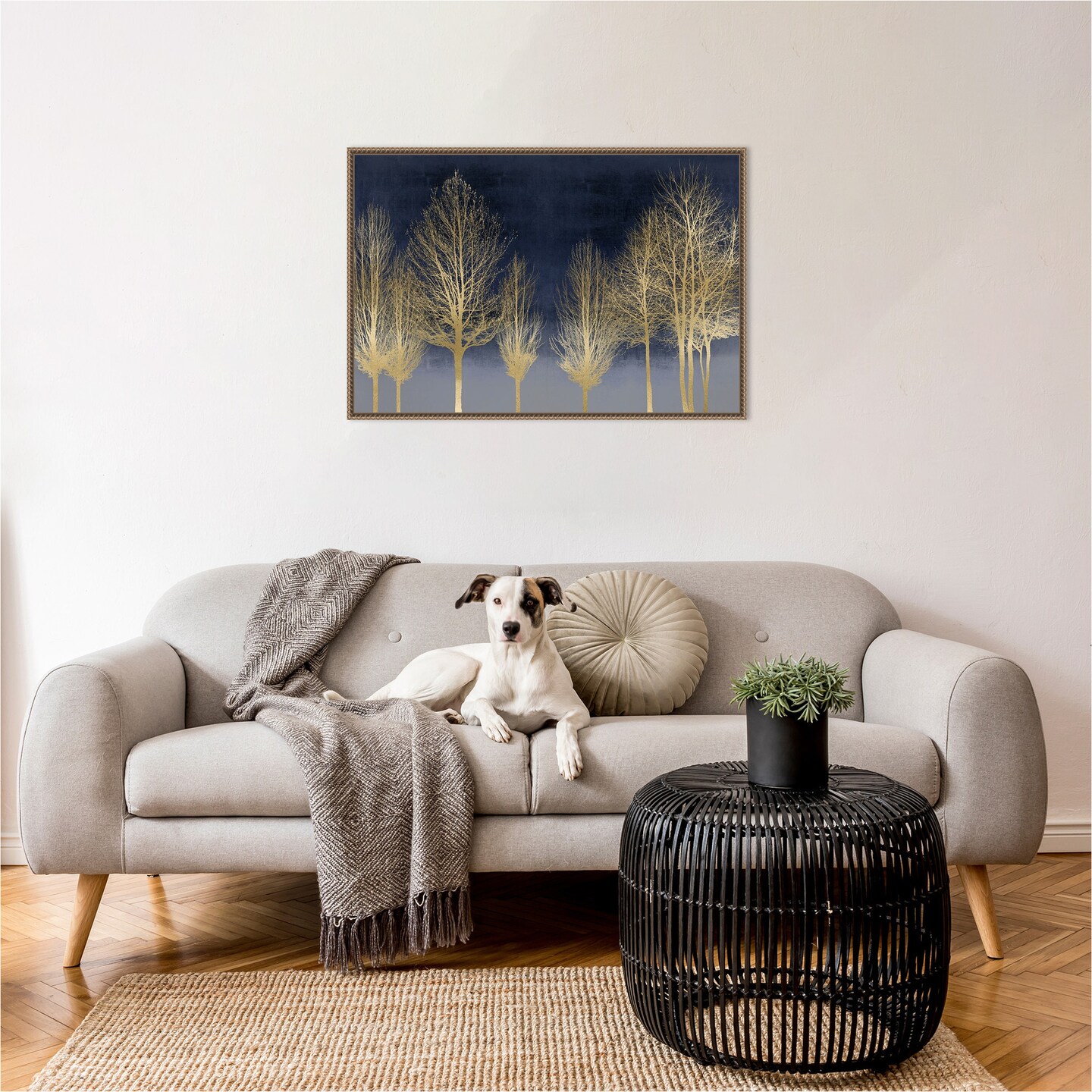 Gold Forest on Blue by Kate Bennett Framed Canvas Wall Art