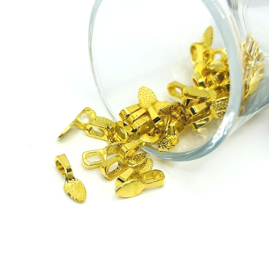 Gold Glue-On Leaf Jewelry Bails, 15x5mm