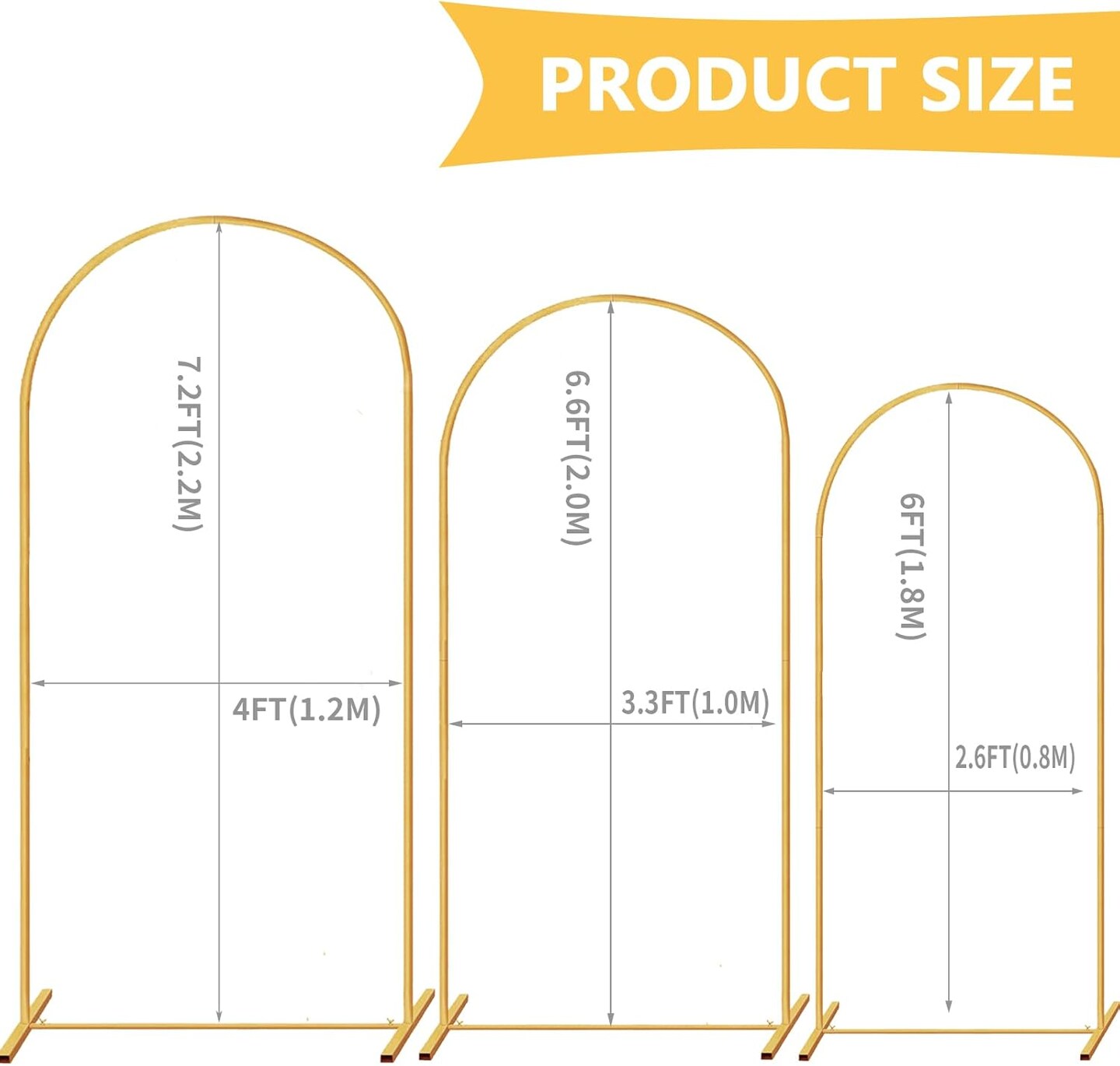 Gold Metal Arch Backdrop Stand – Set of 3 (7.2ft, 6.6ft, 6ft) for Weddings, Parties & Ceremonies