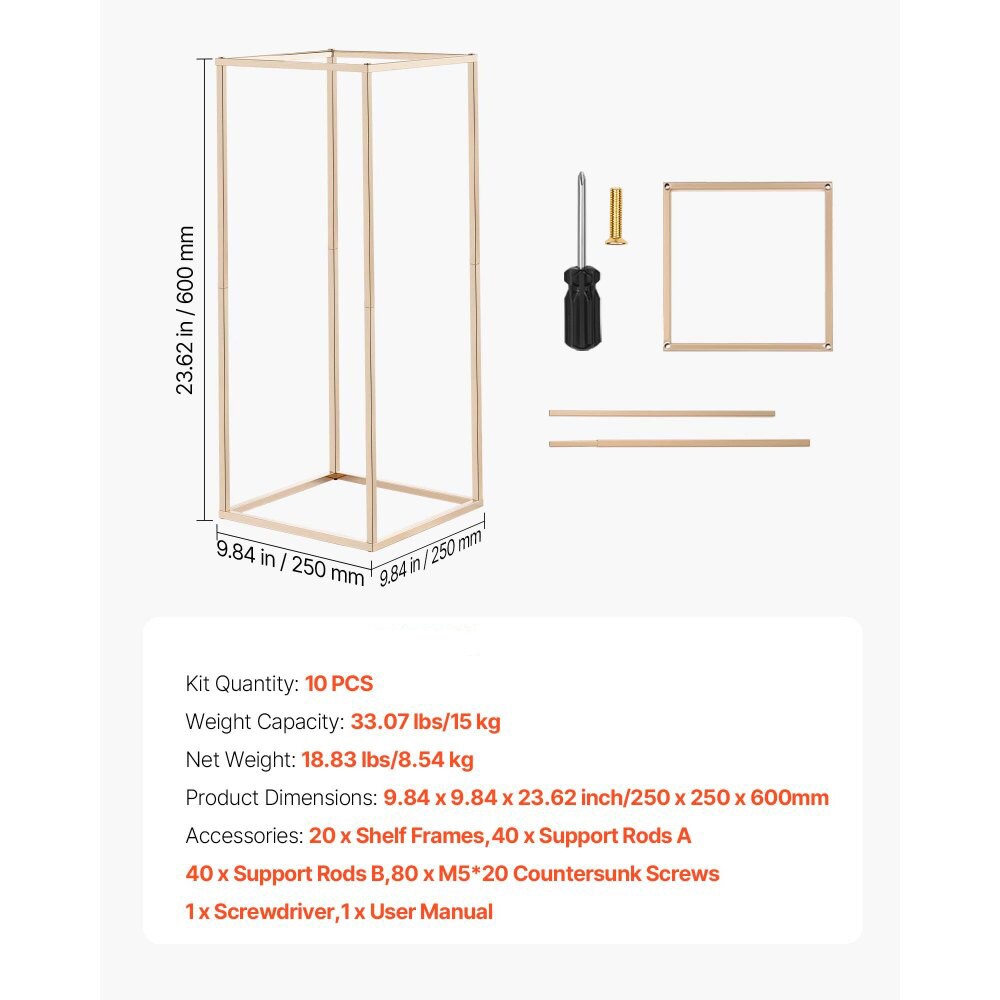 Gold Metal Floral Cube Stand 10PCS, 33LB Capacity Wedding Decor