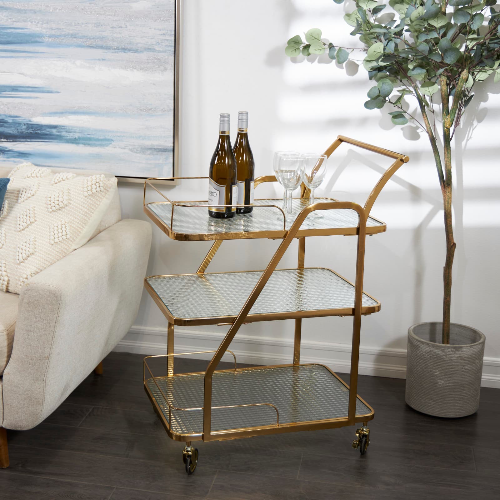 Gold Metal Glass Shelf 3-Tier Bar Cart