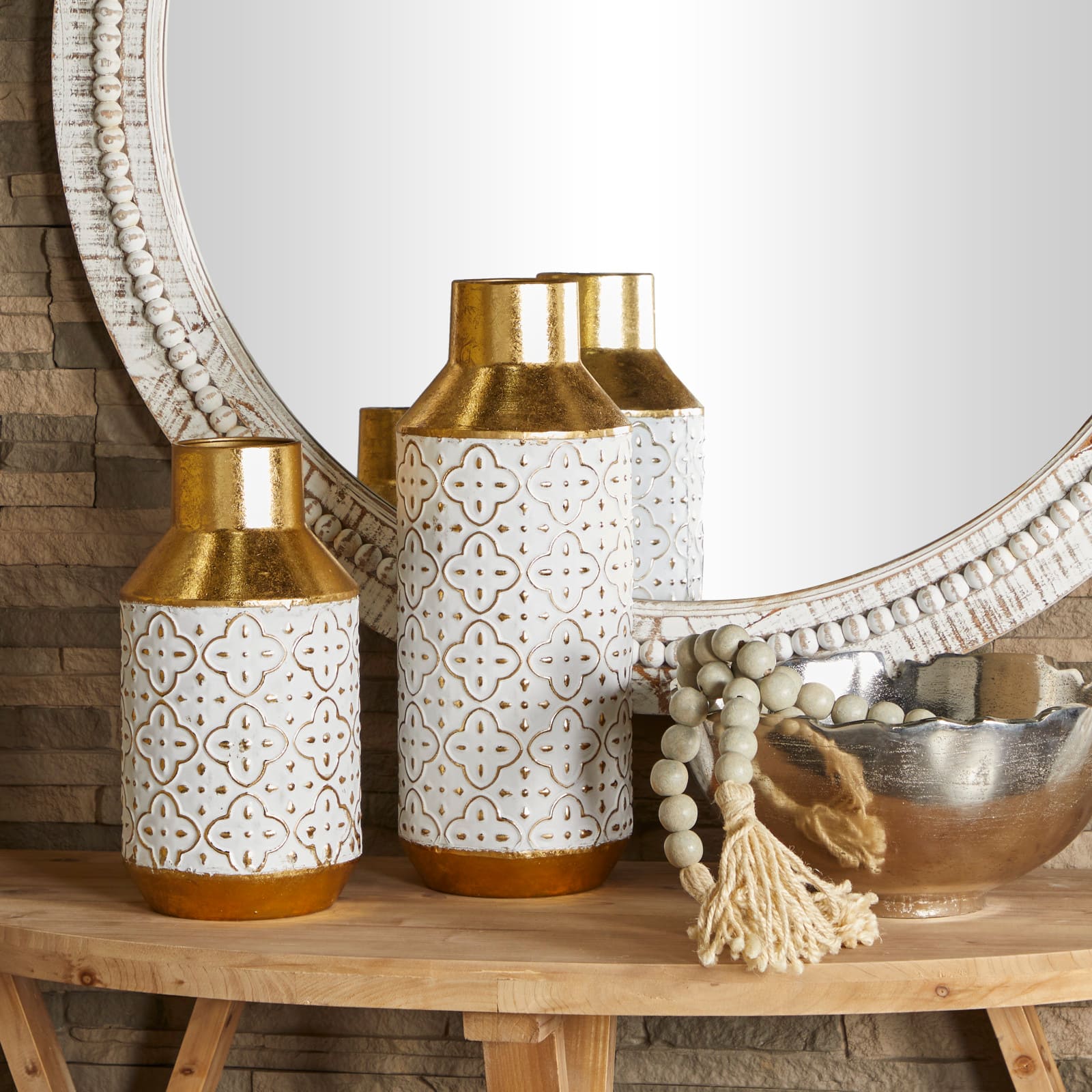 Gold Metal Handmade Embossed Quatrefoil Vase with Gold Detailing Set of 2 16", 12"