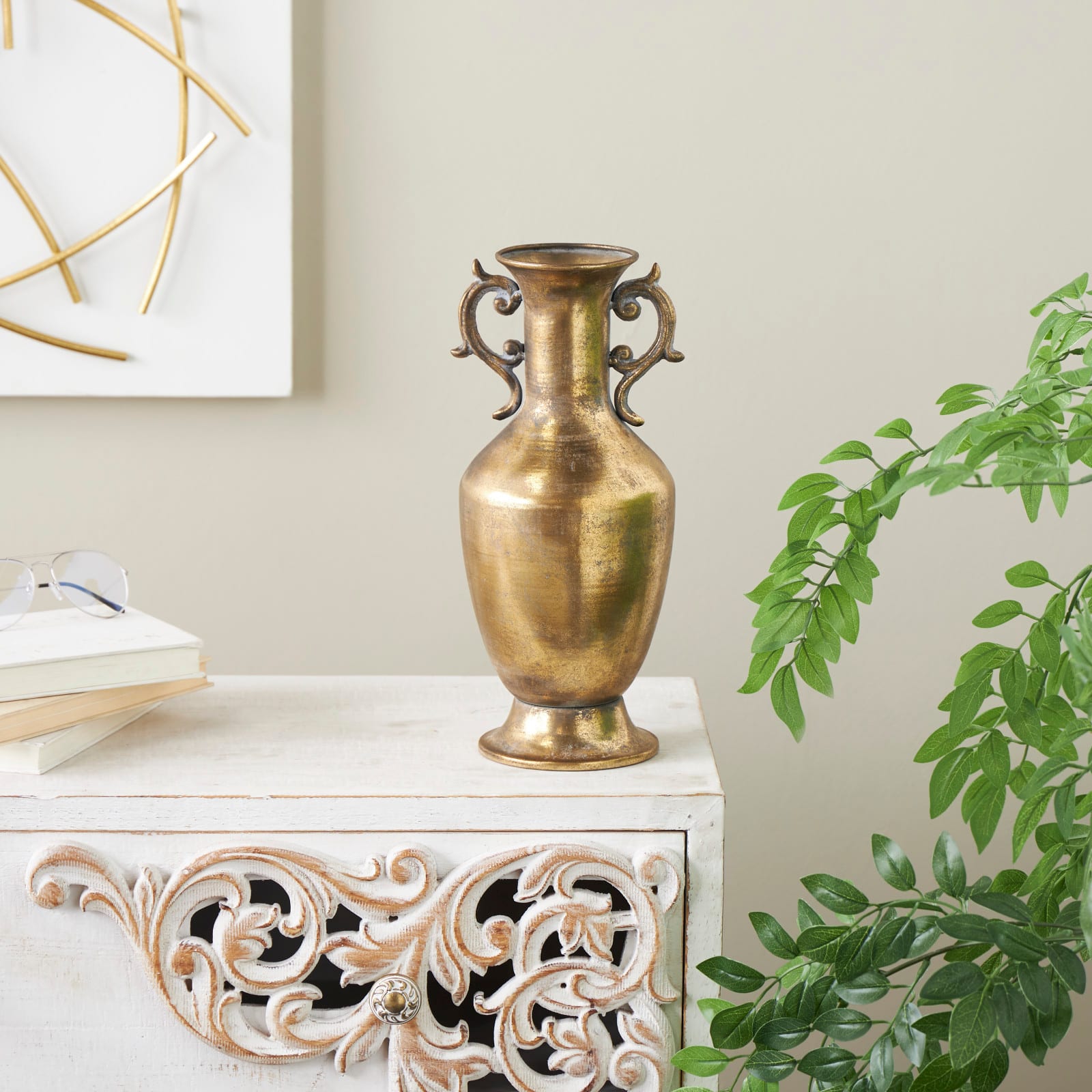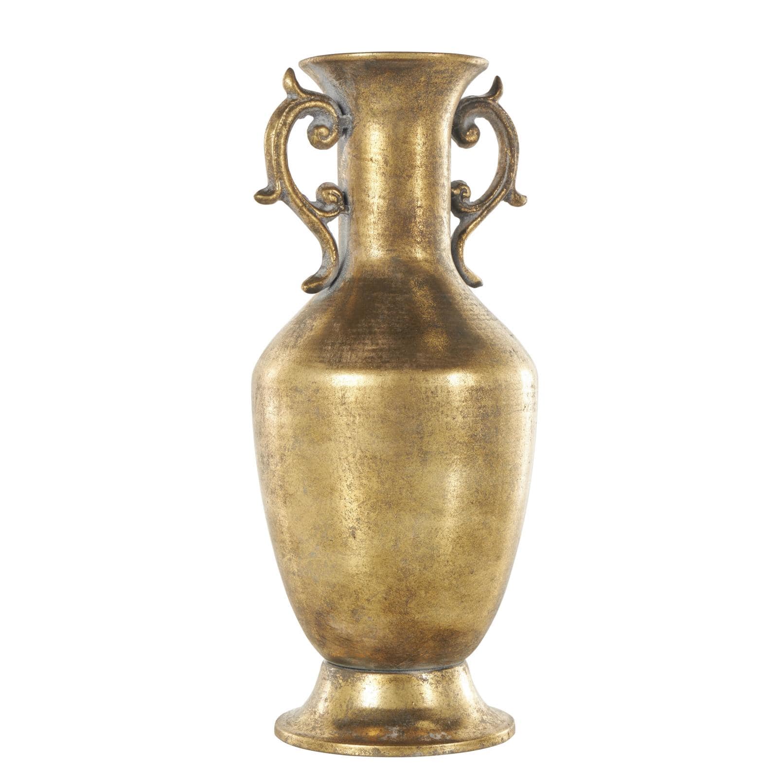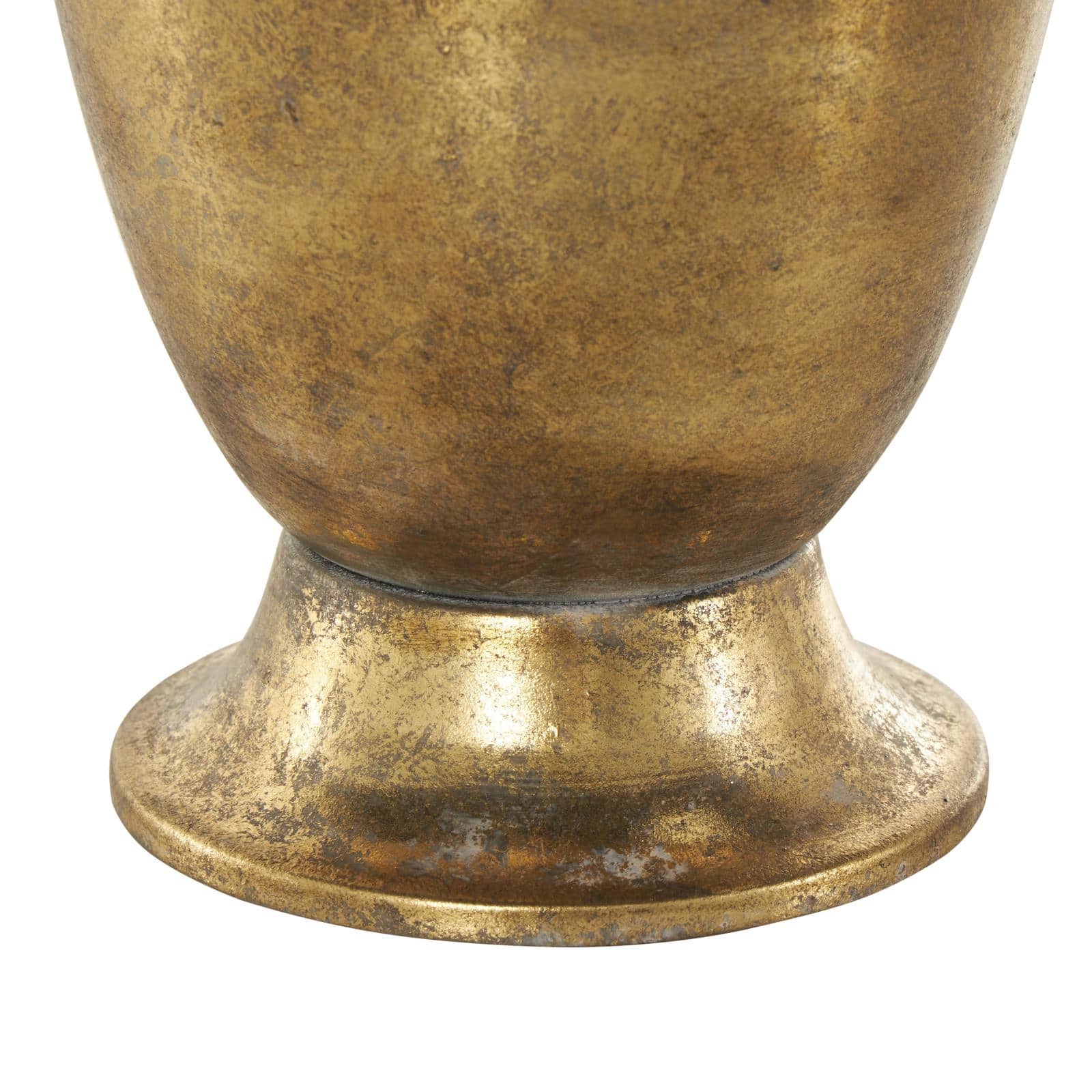 Gold Metal Weathered Vintage Amphora Decorative Vase with Scroll Handles