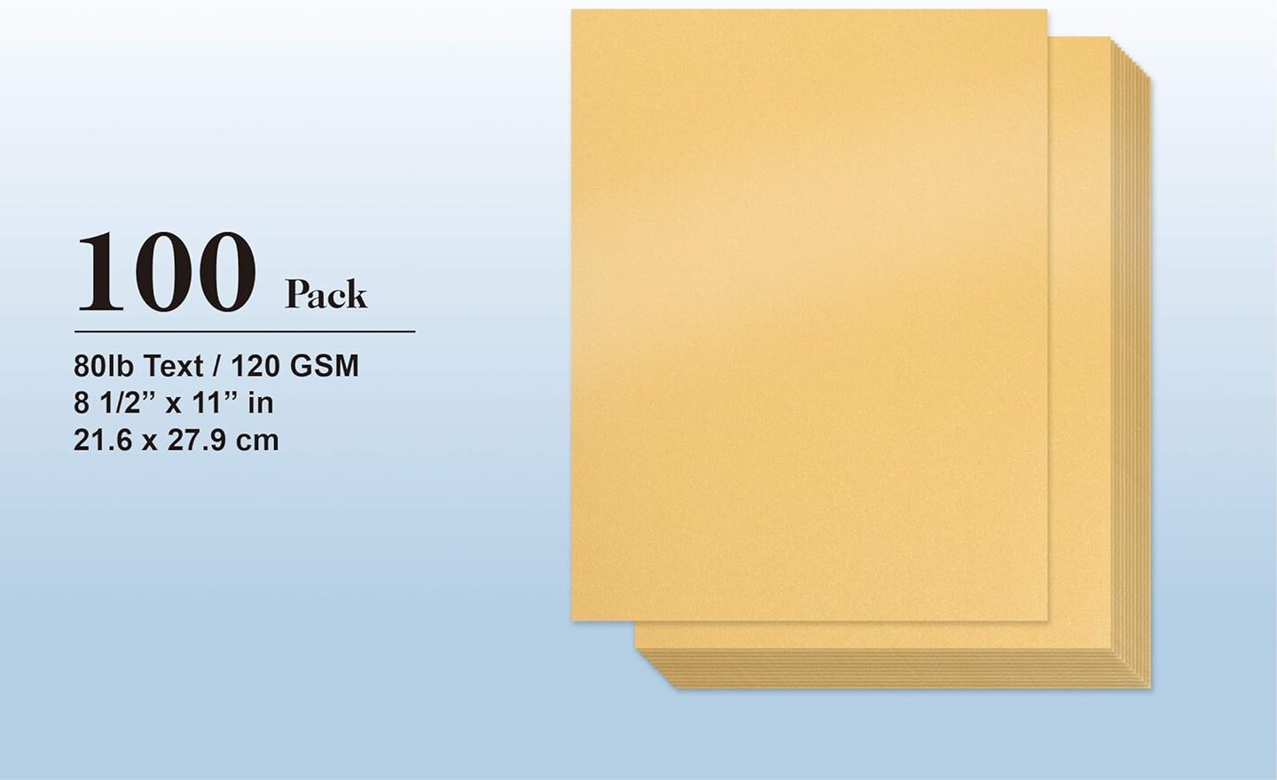 Gold Metallic Paper - 100-Pack Golden Shimmer Paper, Paper Crafting Supplies, Perfect for Flower Making, Ticket, Invitation, Stationery, Scrapbook Use, Printer Friendly, 80lb Text, 8.5 x 11 Inches