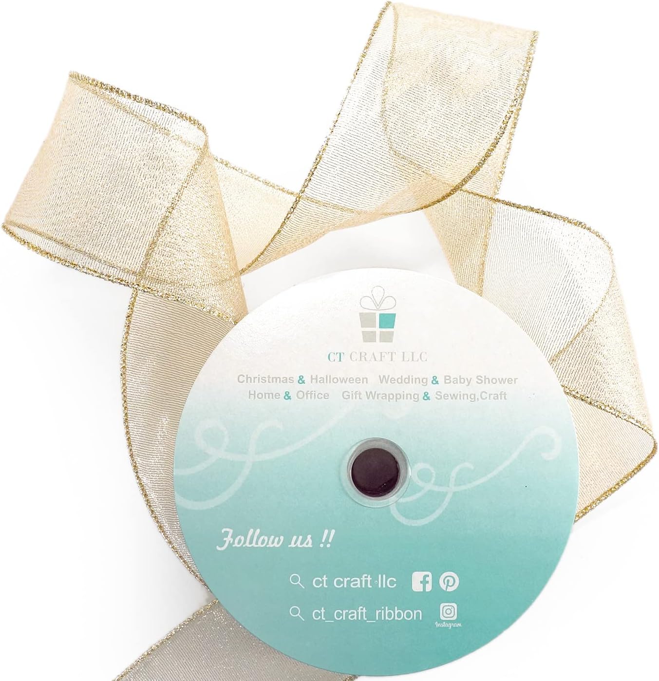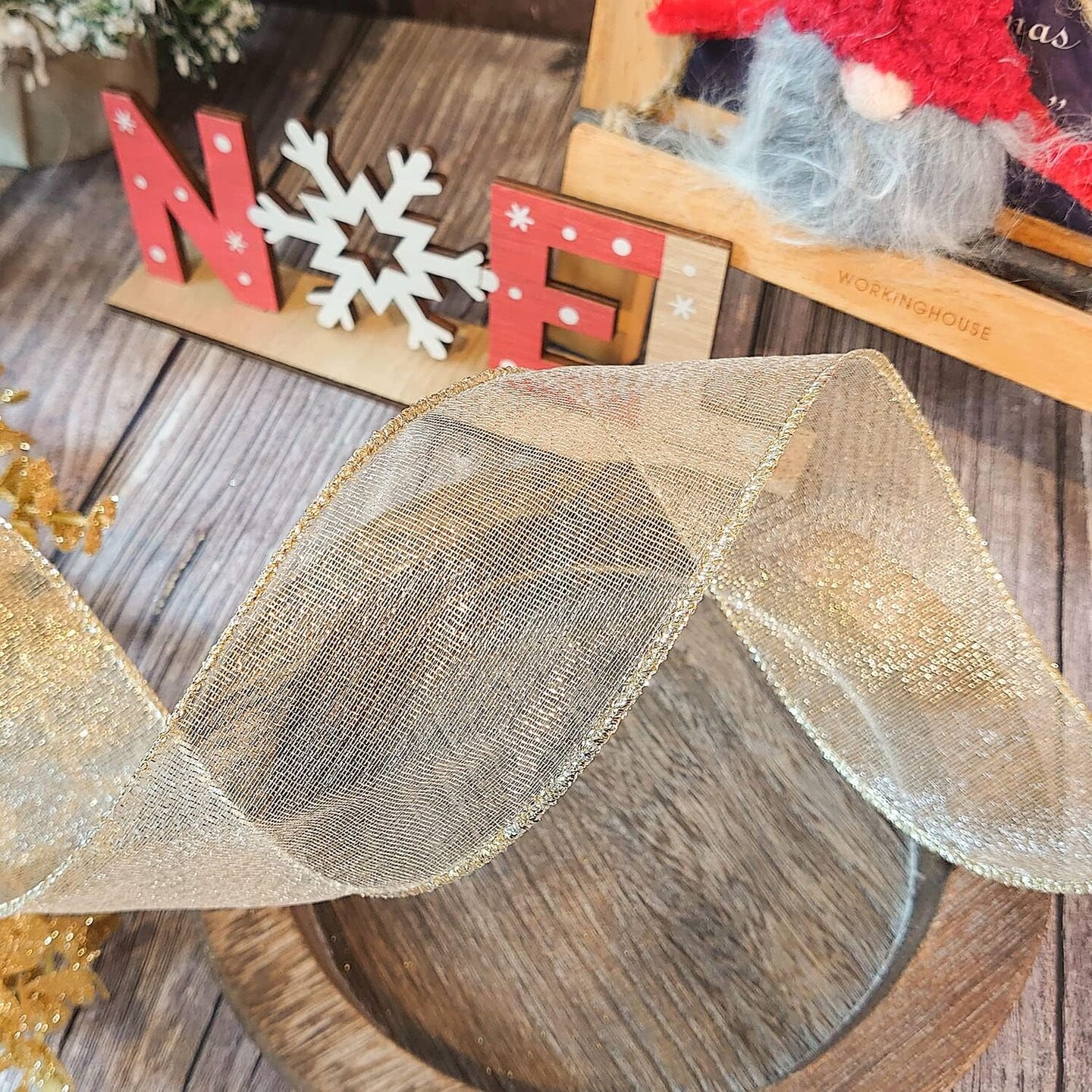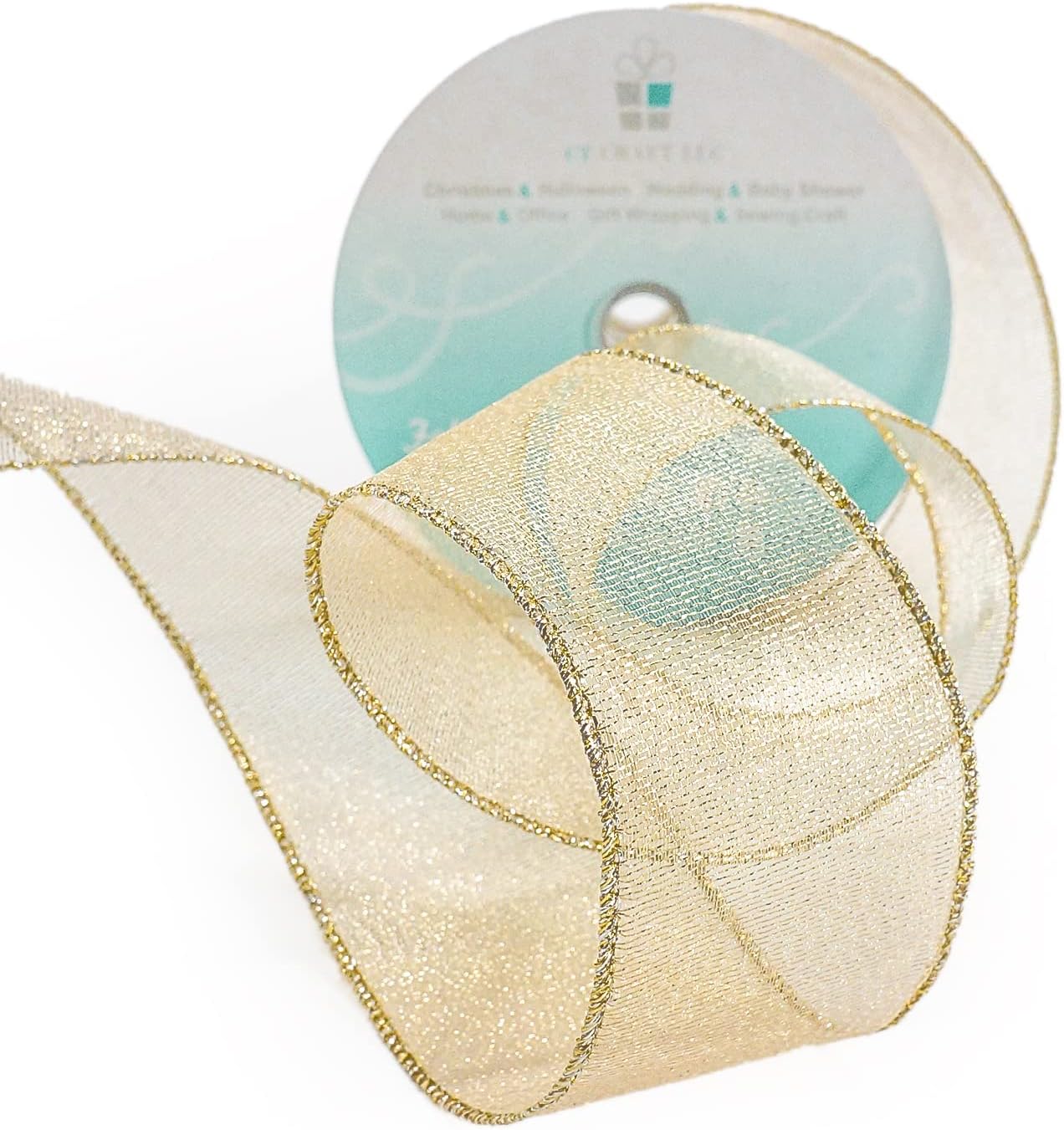 Gold Metallic Wired Ribbon (Champagne Gold) 1433"L x 2.5"W