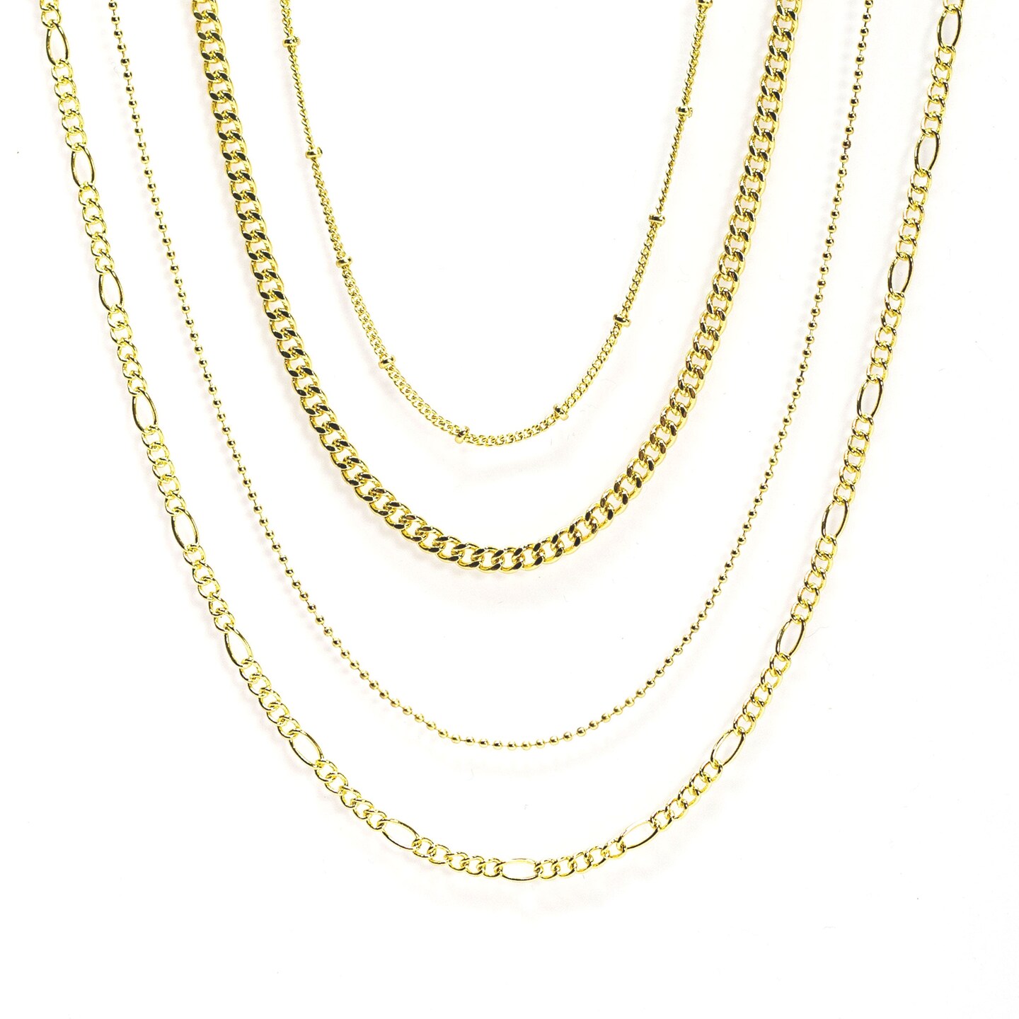 Gold Multi Chain Necklaces 4pc Set