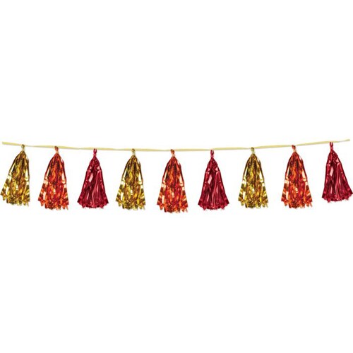 Gold, Orange & Red Metallic Tassel Garland