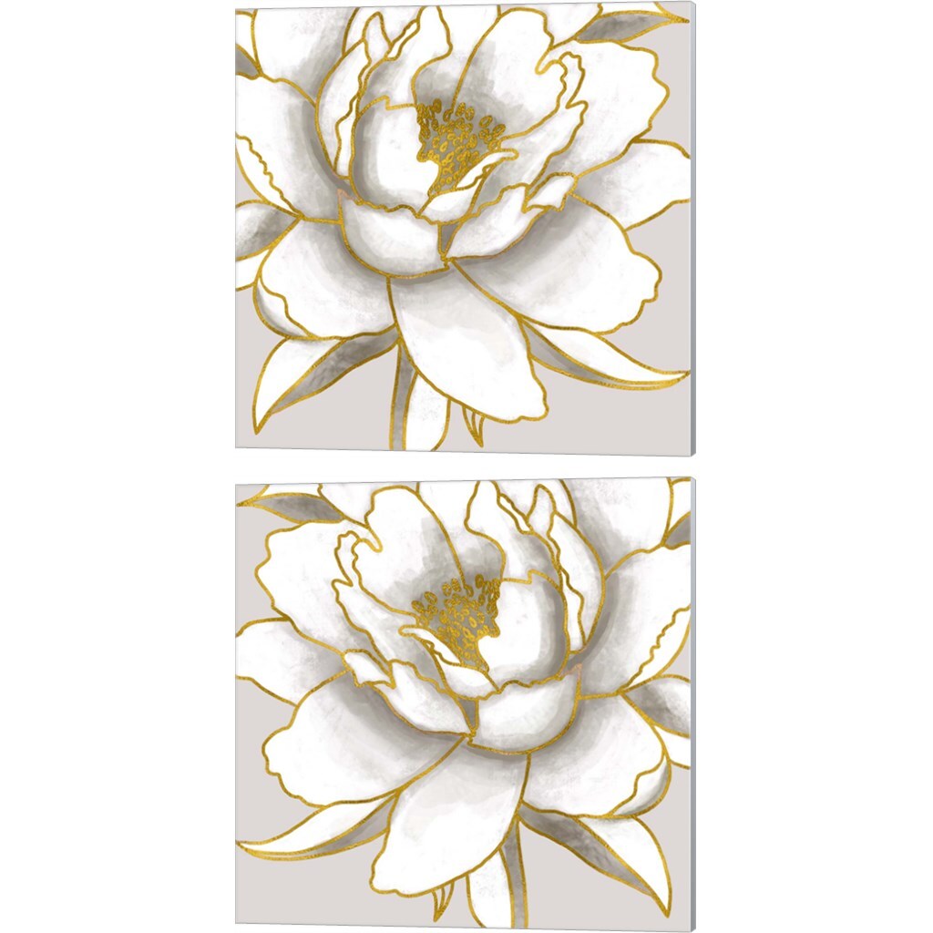 Gold Peony by Elizabeth Tyndall 14" x 14" Canvas Wall Art (Set of 2)