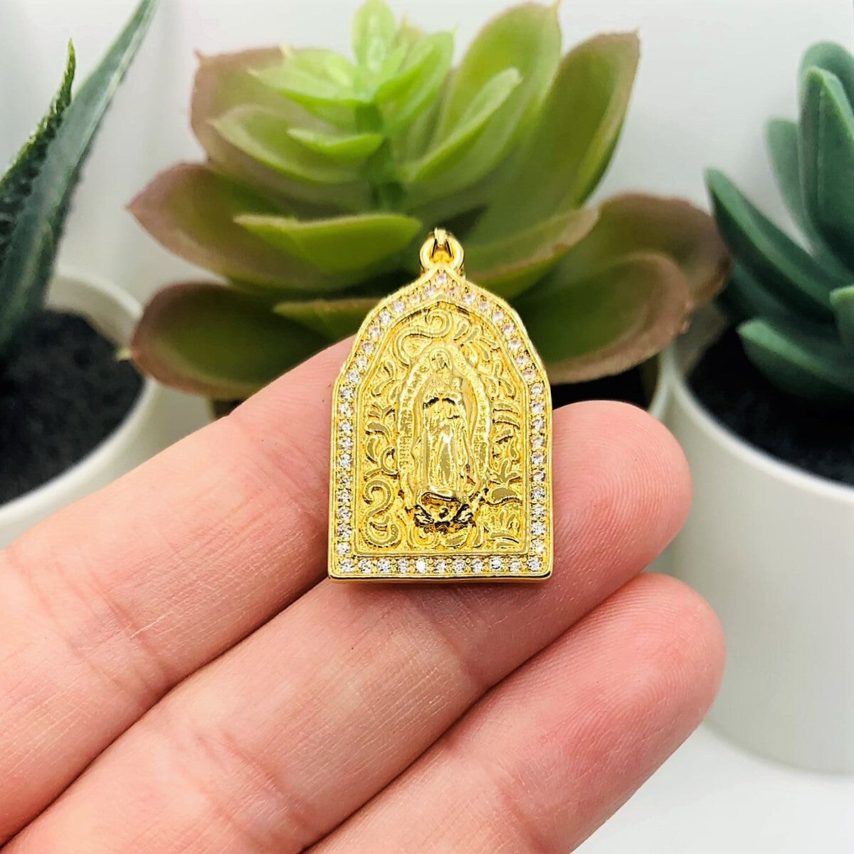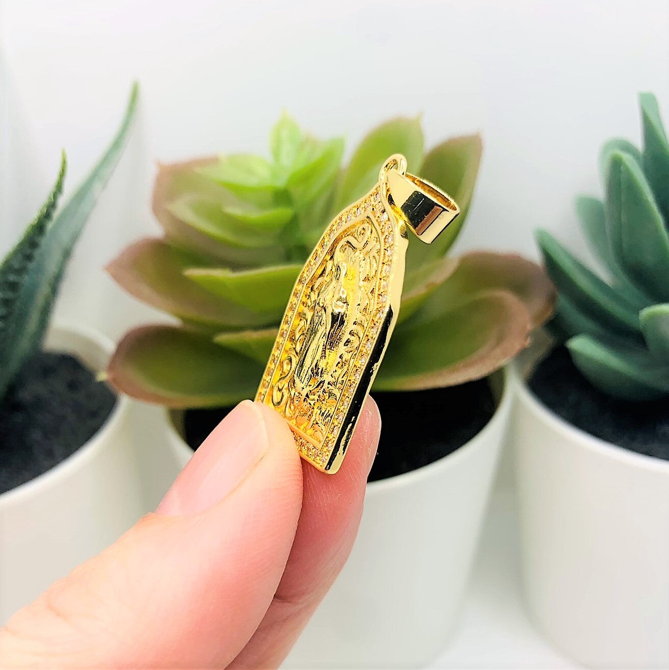 Gold Plated Jesus Pendant with Micro Pave, 36x18mm