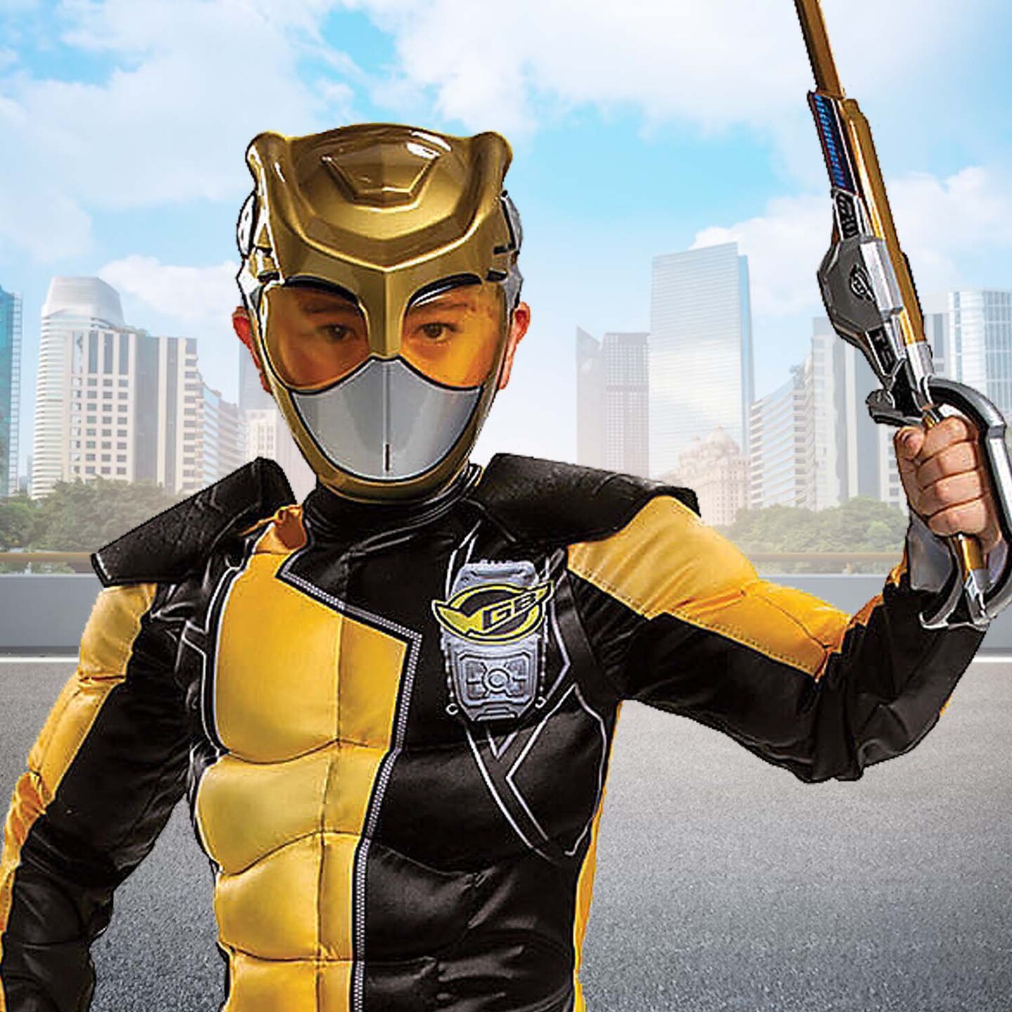 Gold Ranger Beast Child Costume Muscle Jumpsuit with Character Half Mask for Boys