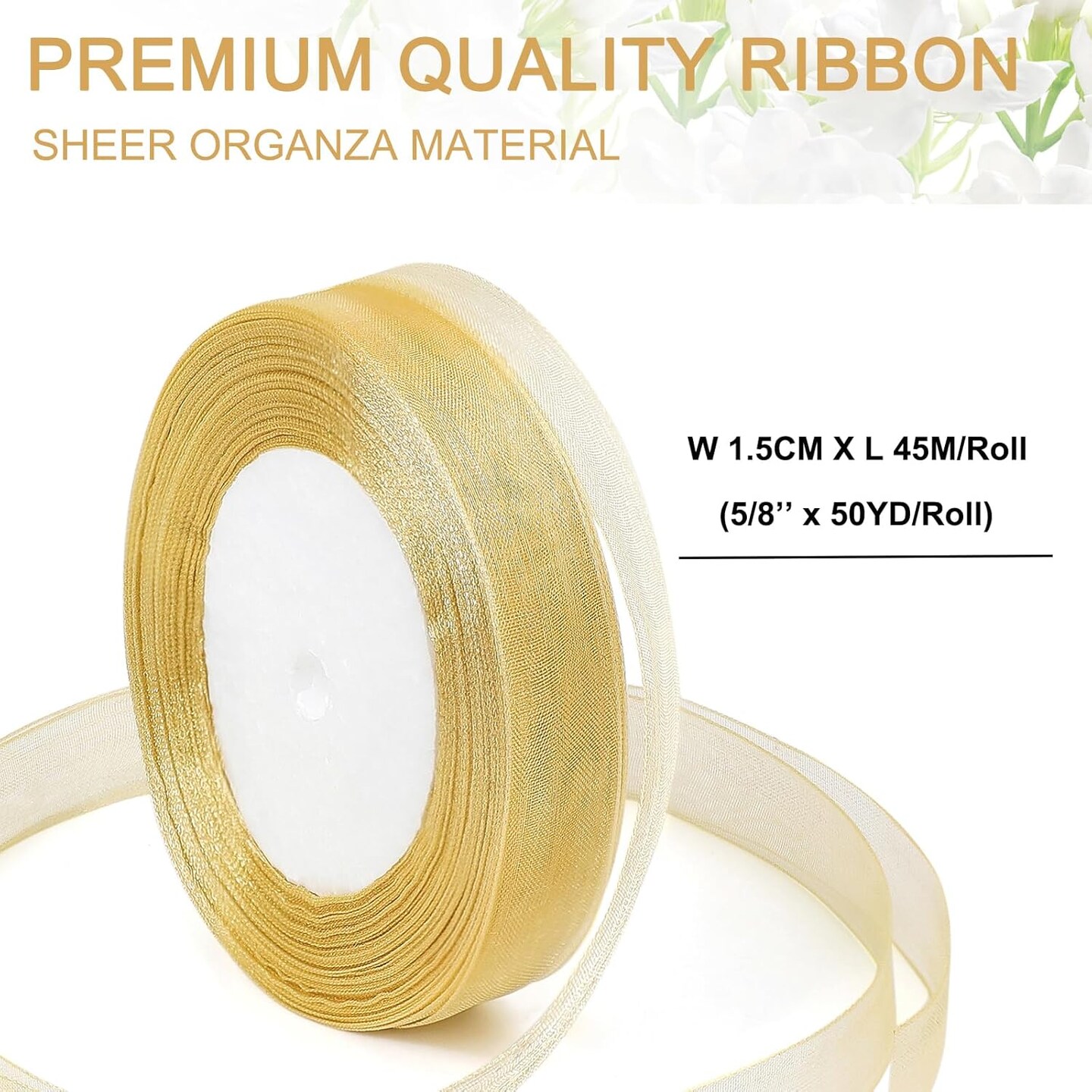 Gold Ribbon for Gifts Wrapping (Gold) 1800"L x 0.6"W