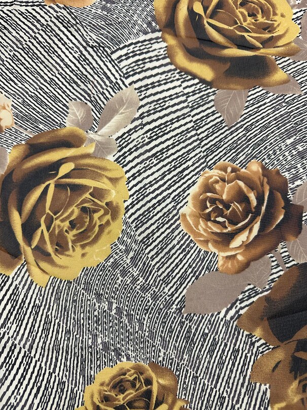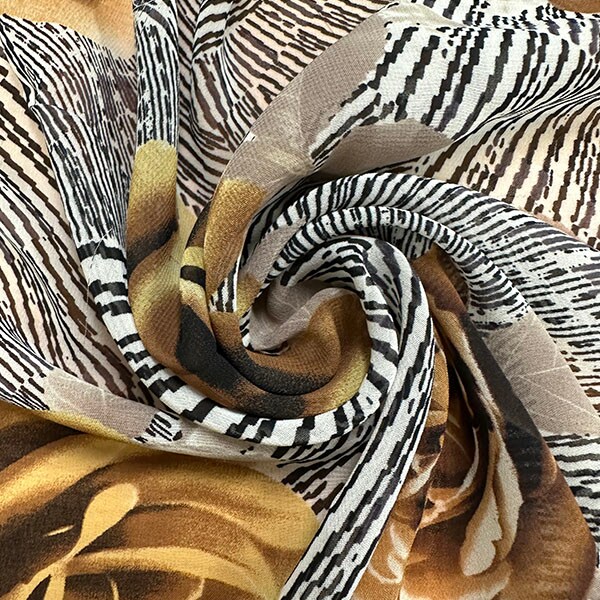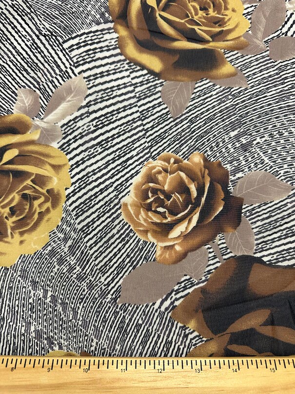 Gold Rose Floral Print Poly Chiffon Fabric By the Yard