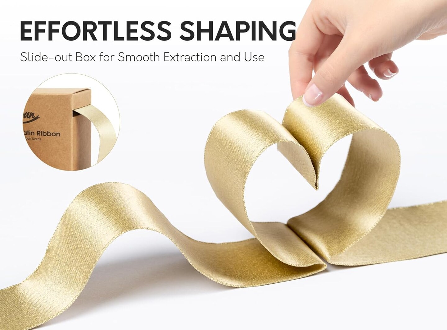 Gold Satin Wired Ribbon 1-1/2 Inch Double-Faced Glitter Ribbons for Wreath, Christmas Tree Decoration, Gift Wrapping, Home Decor 10 Yards