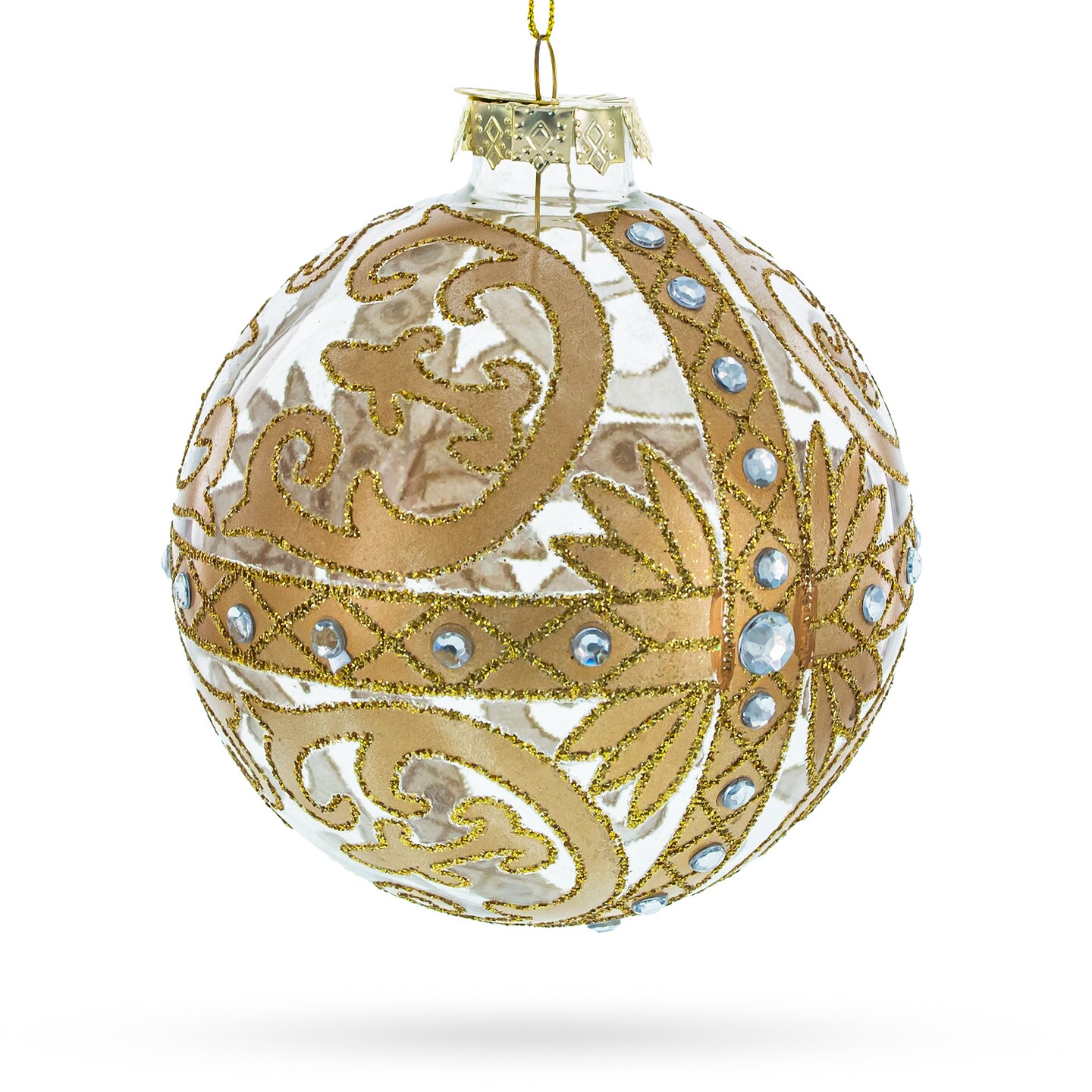Gold Scroll with Jewel Accents Glass Ball Christmas Ornament