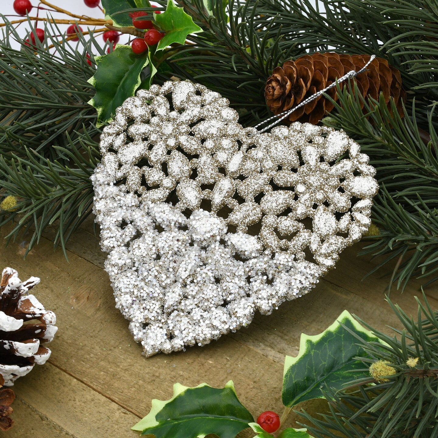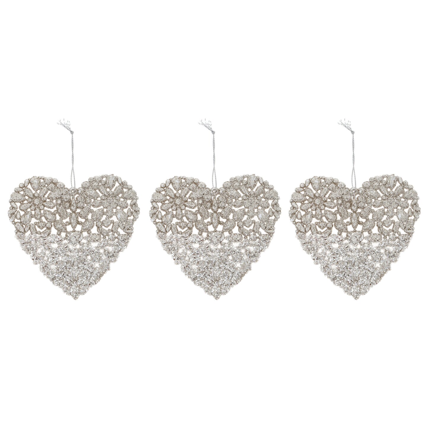Gold & Silver Glitter Heart Christmas Ornament Set