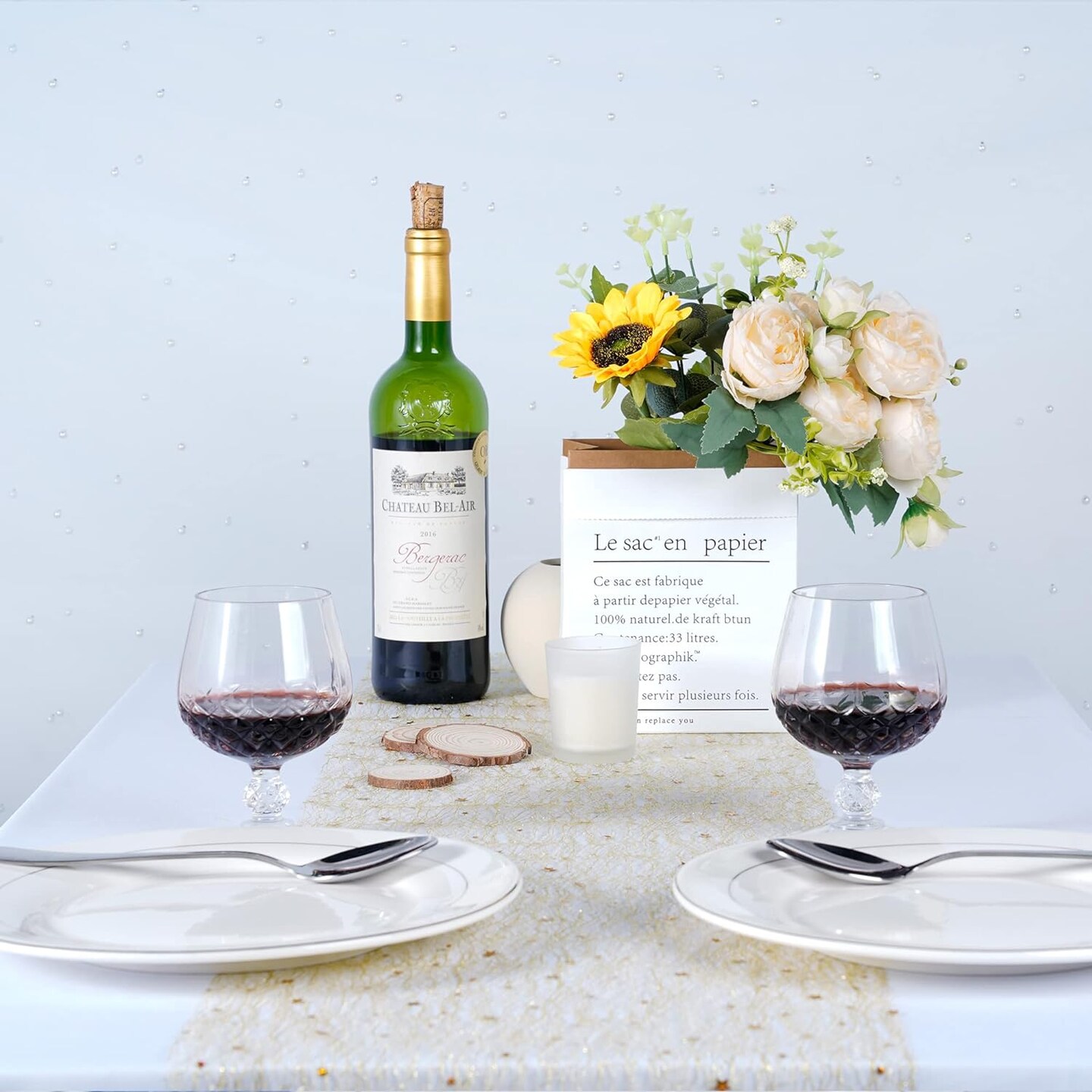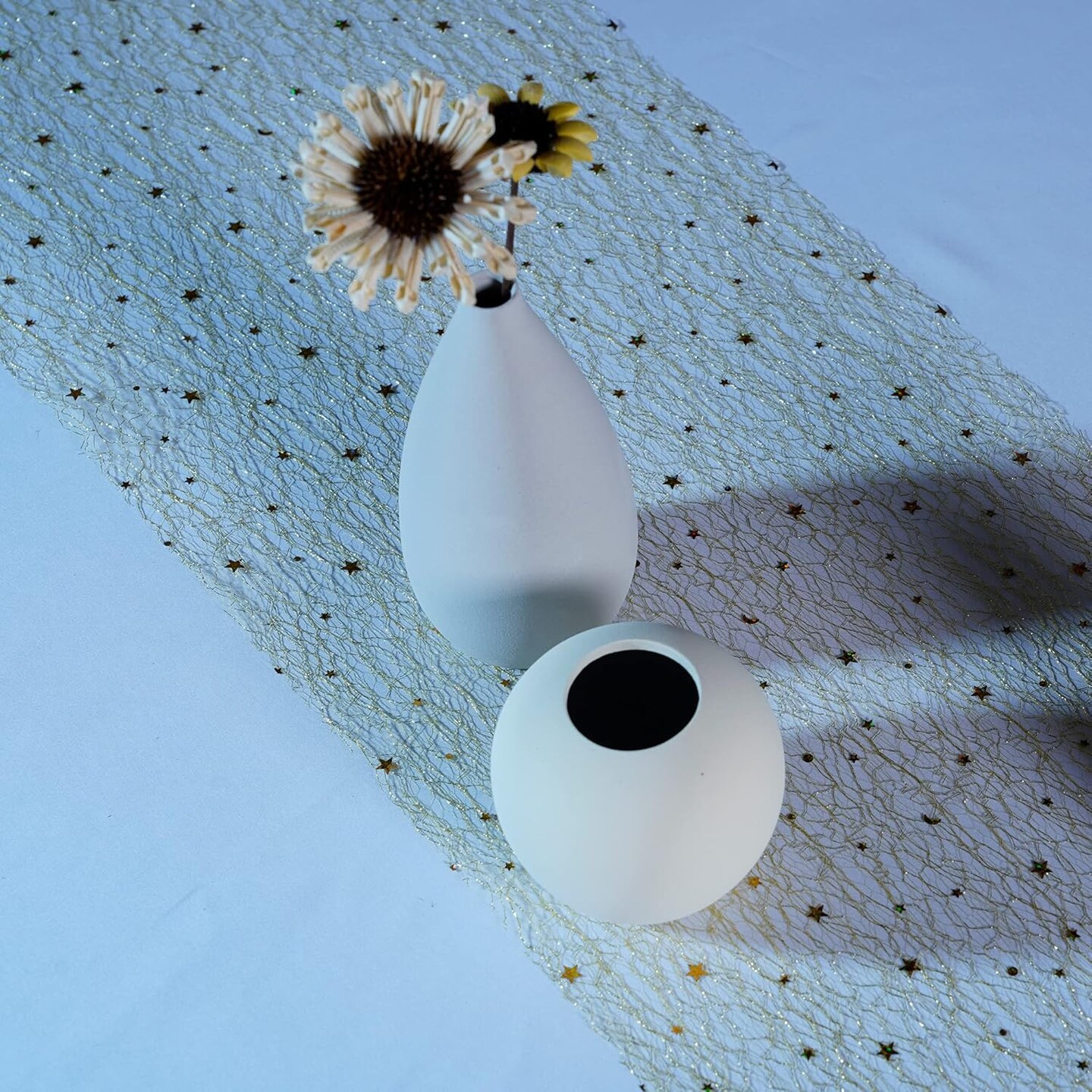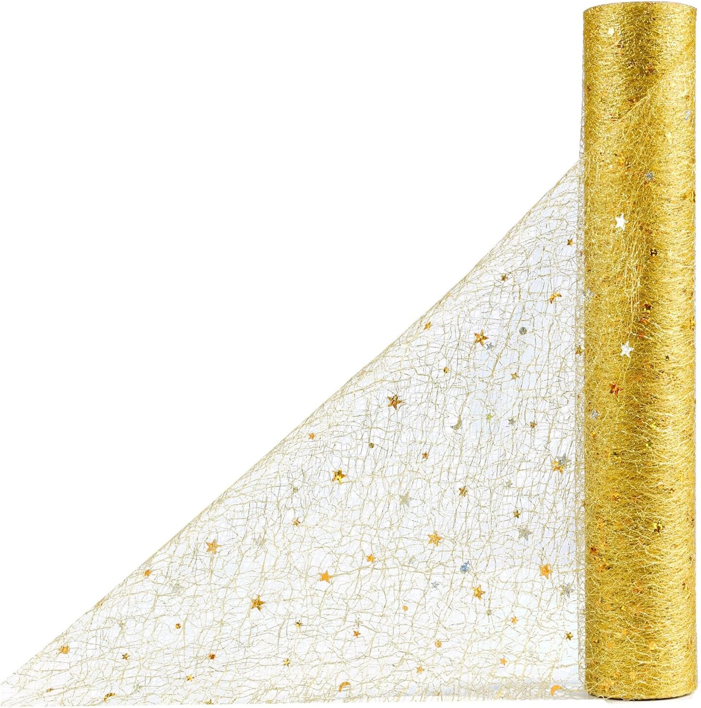 Gold Starry Moon Table Runner, 11 × 33 ft Glitter Sequin Mesh with Stars and Moons for Wedding, Valentine’s Day, Bridal Shower, Baby Shower, Birthday Party, and Table Decorations