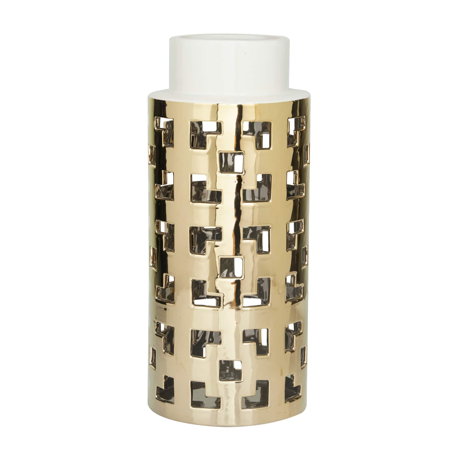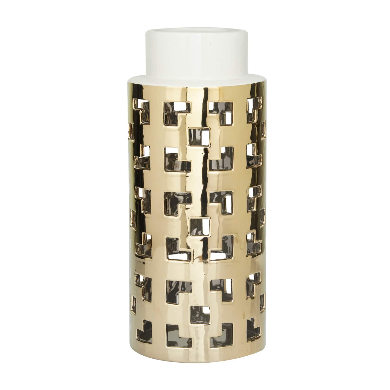 Gold Stoneware Glam Vase, 14" x 6" x 6"