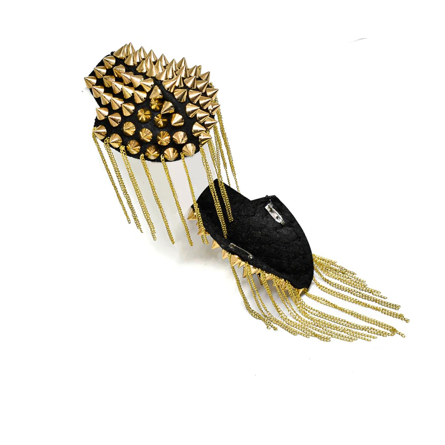 Gold Studded Shoulder Epaulet Pair with Dangling Chains for Metal Head Fashion