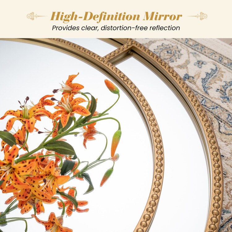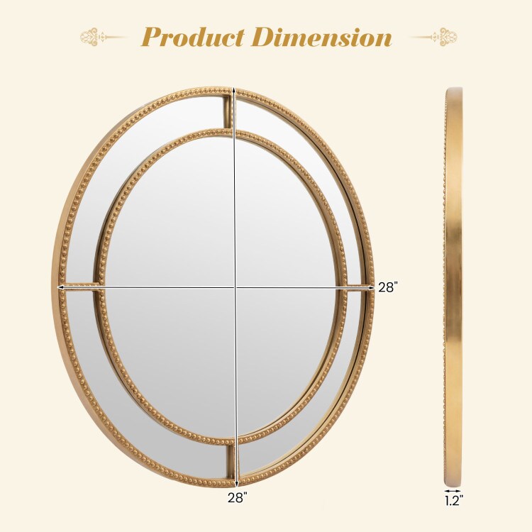 Gold Wall Mirror Round Beaded Frame MDF Metal Aluminum 28 Inch Decorative