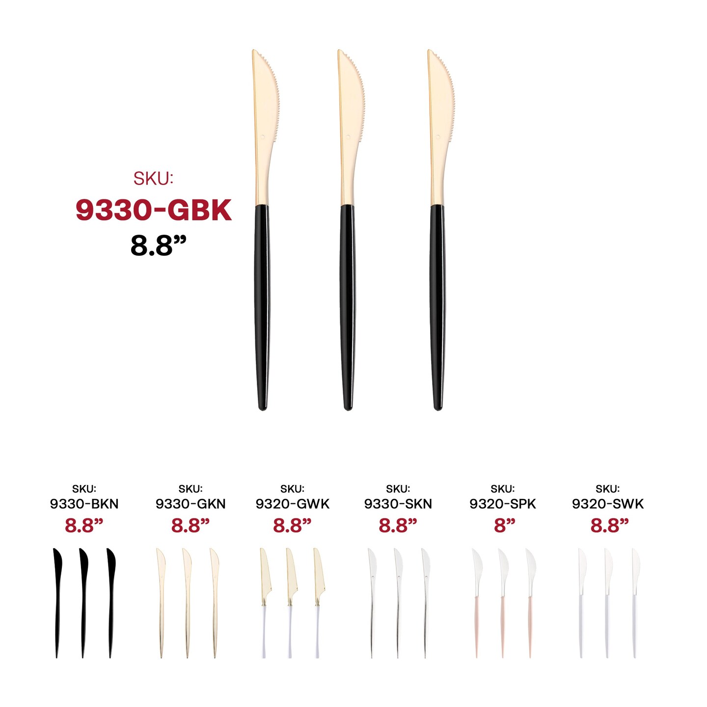 Gold with Black Handle Moderno Disposable Plastic Dinner Knives (240 Knives)