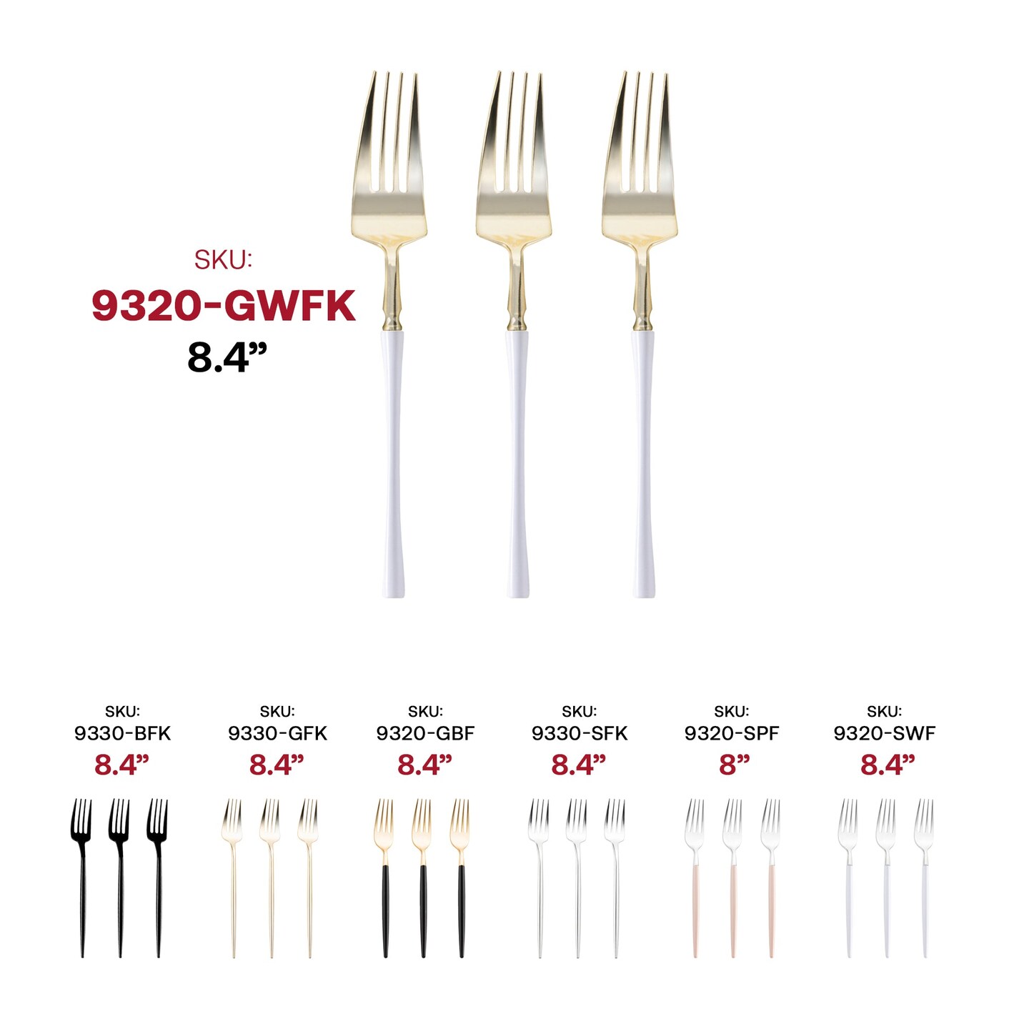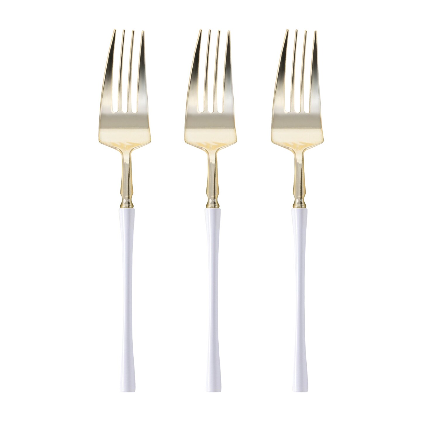 Gold with White Handle Moderno Disposable Plastic Dinner Forks (240 Forks)