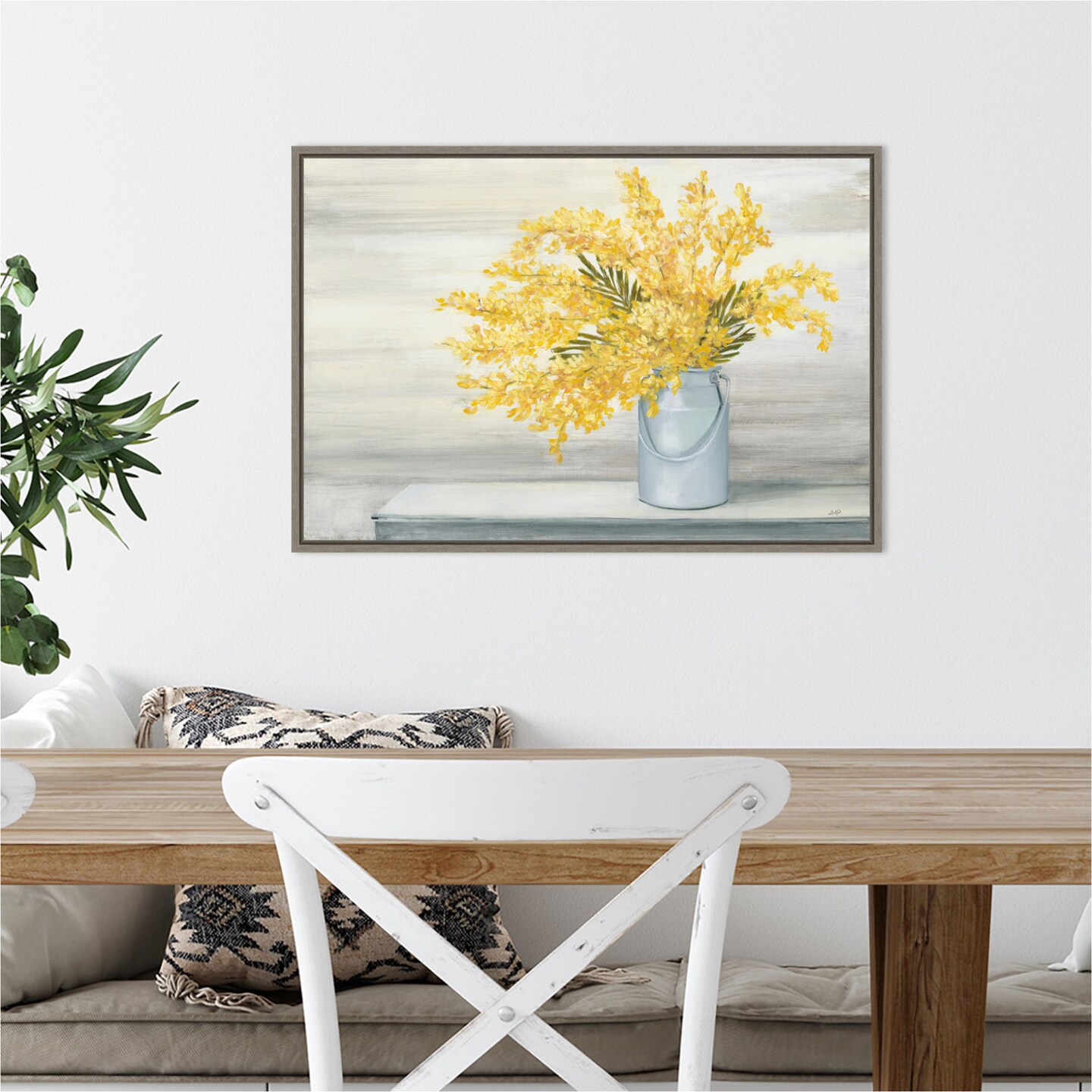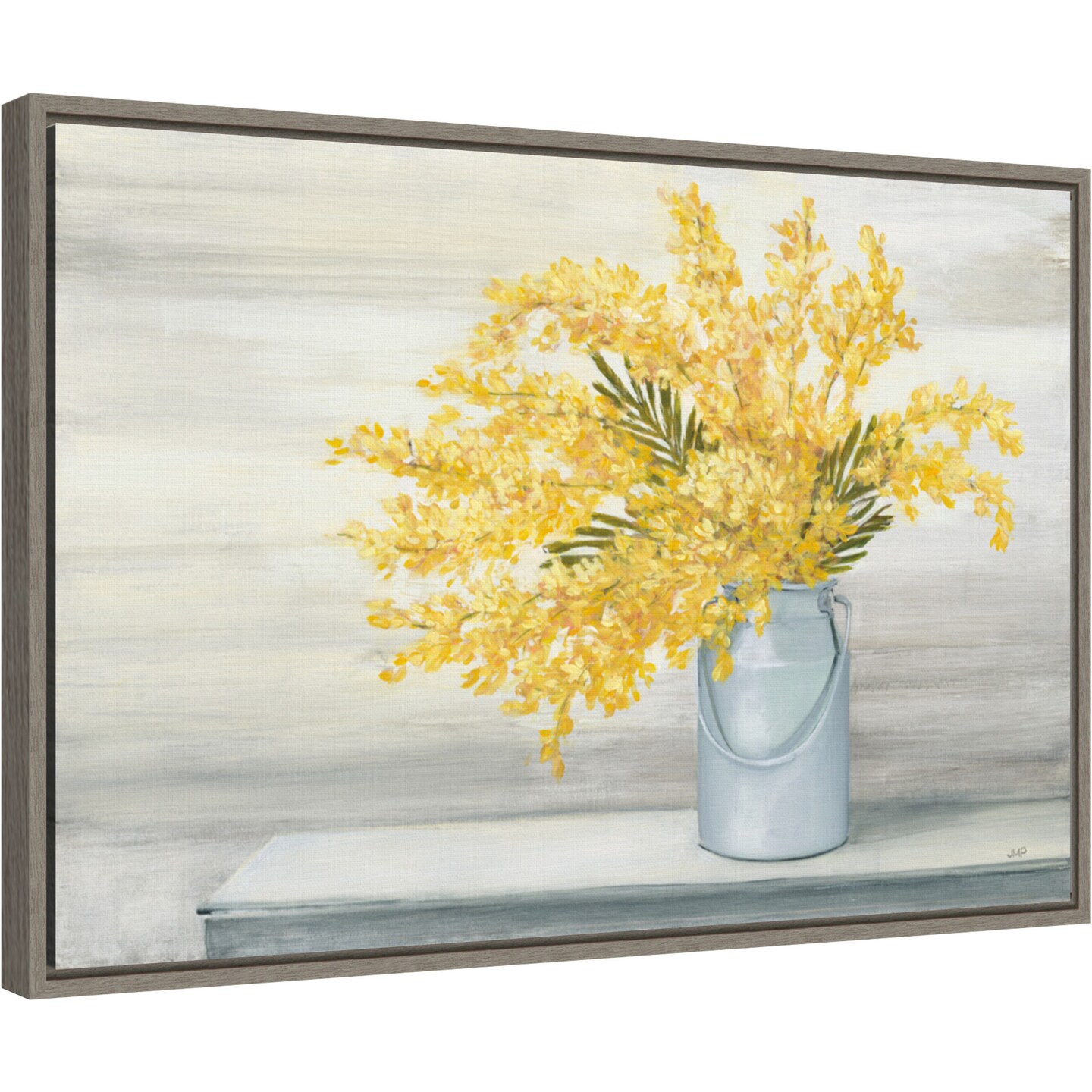 Golden Fall Floral Cuttings by Julia Purinton 23-in. W x 16-in. H. Canvas Wall Art Print Framed in Grey