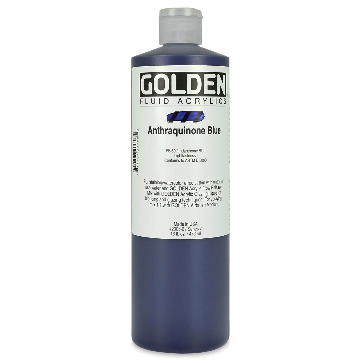 Golden Fluid Acrylics - Anthraquinone Blue, 16 oz bottle
