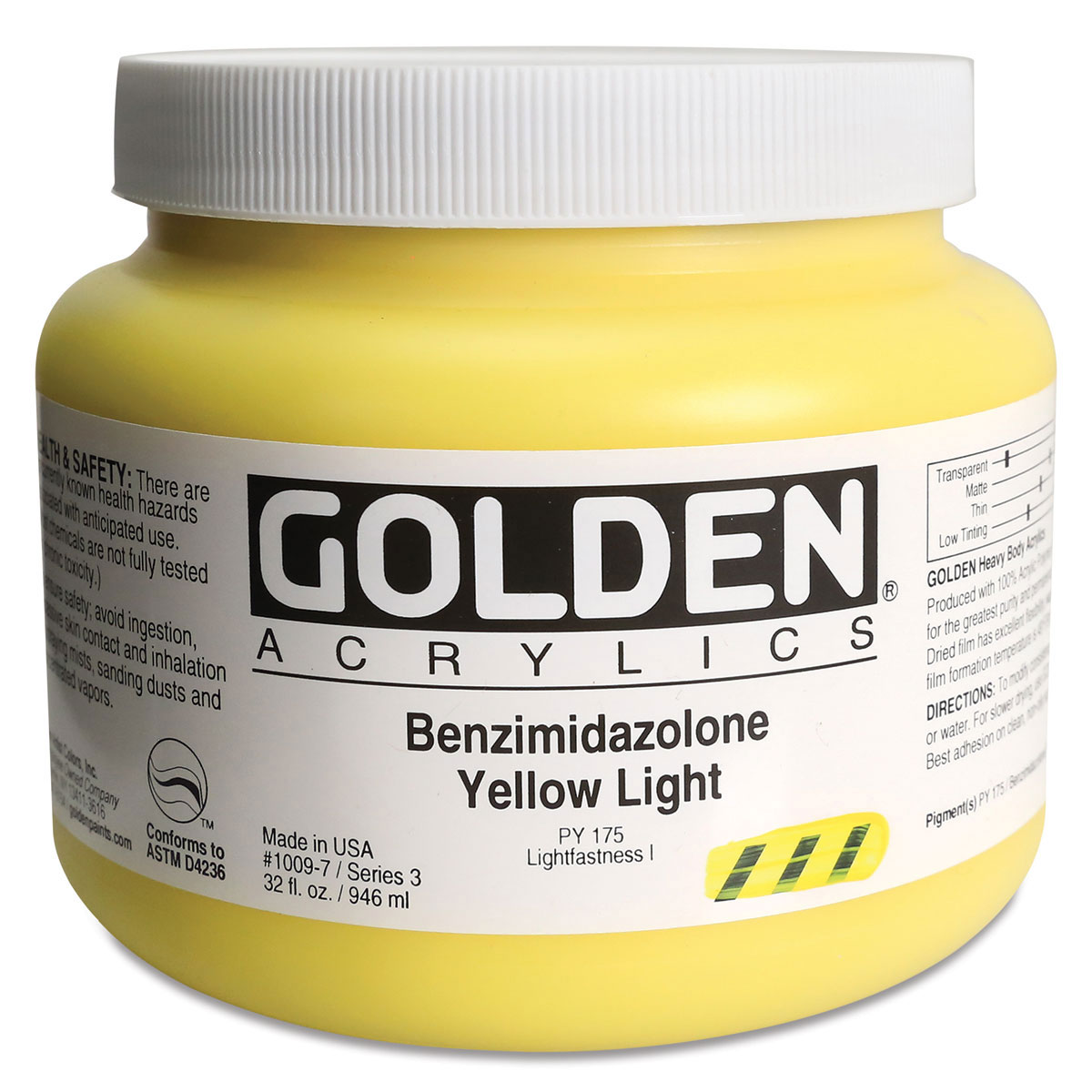 Golden Heavy Body Artist Acrylics - Benzimidazolone Yellow Light, 32 oz
