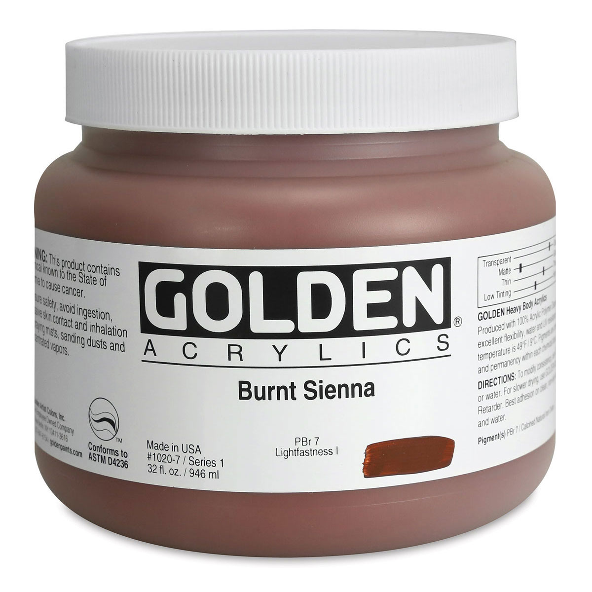 Golden Heavy Body Artist Acrylics - Burnt Sienna, 32 oz Jar