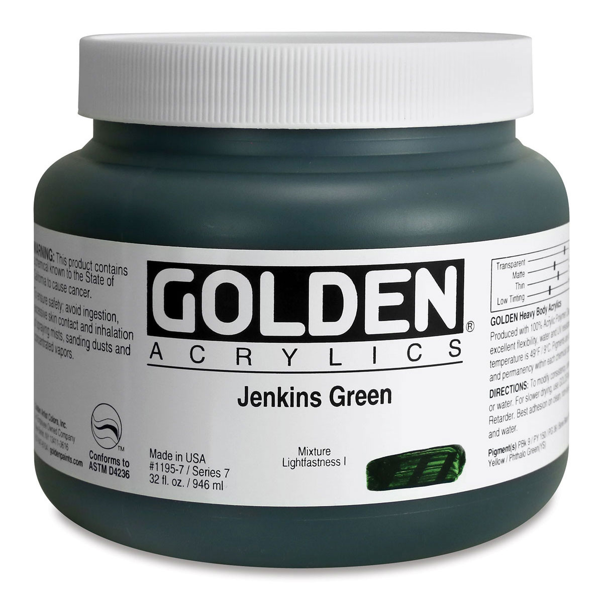Golden Heavy Body Artist Acrylics - Jenkins Green, 32 oz Jar