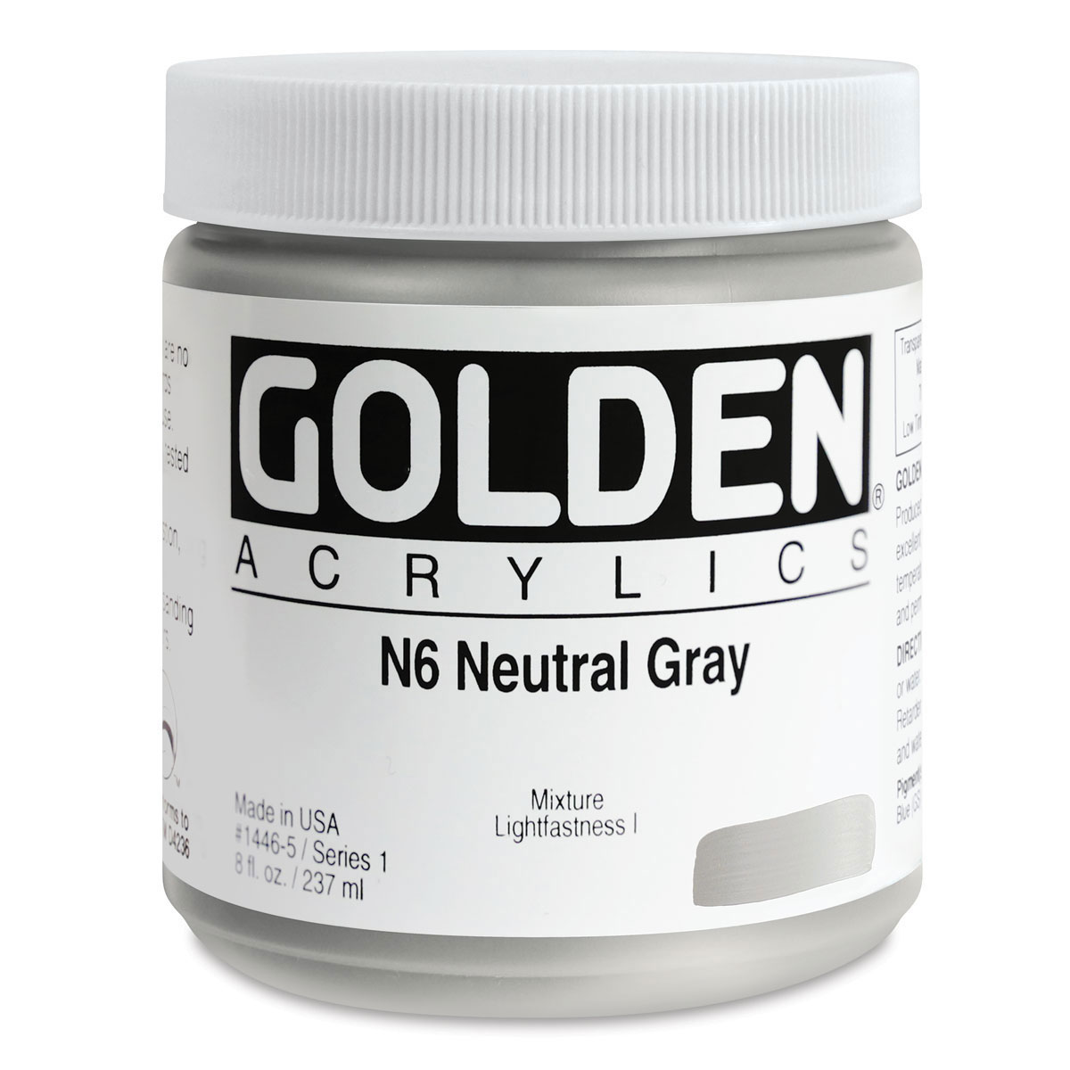 Golden Heavy Body Artist Acrylics - Neutral Gray N6, 8 oz Jar