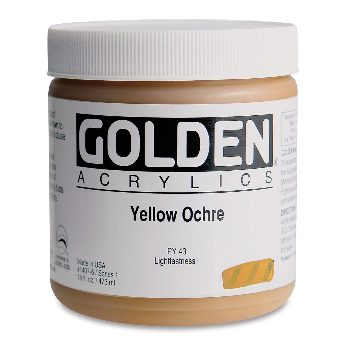 Golden Heavy Body Artist Acrylics - Yellow Ochre, 16 oz Jar