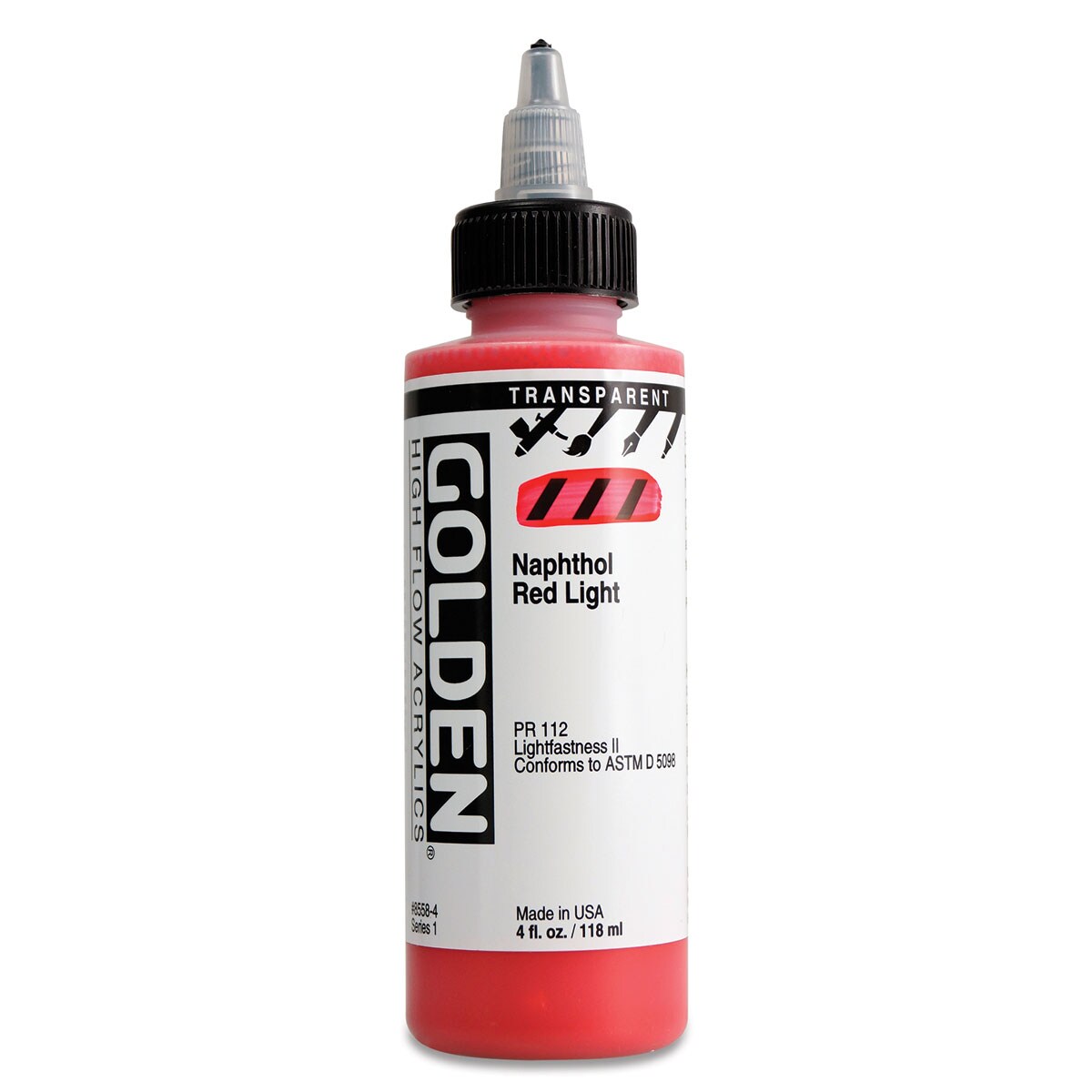 Golden High Flow Acrylics - Transparent Naphthol Red Light, 4 oz bottle