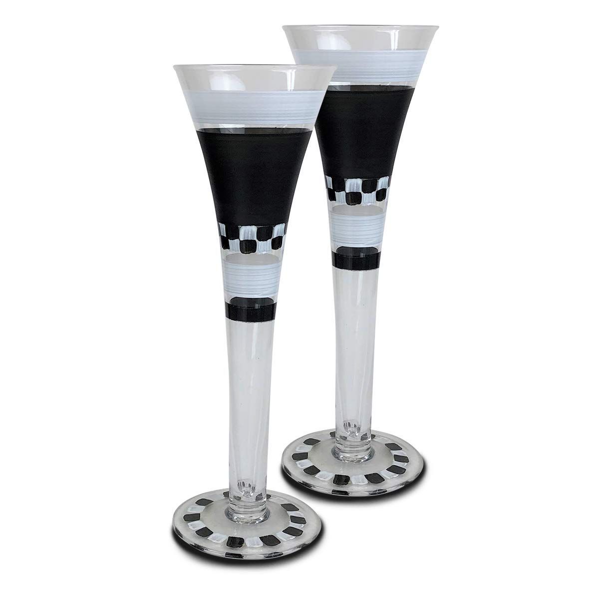 Golden Hill Studio Set of 2 Black and White Checkered Chalk Hollow Flute 10"