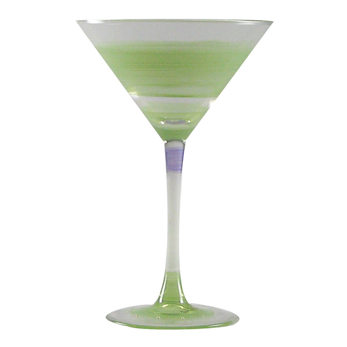 Golden Hill Studio Set of 2 Green and Clear Retro Striped Wine Glasses 7.5 oz.