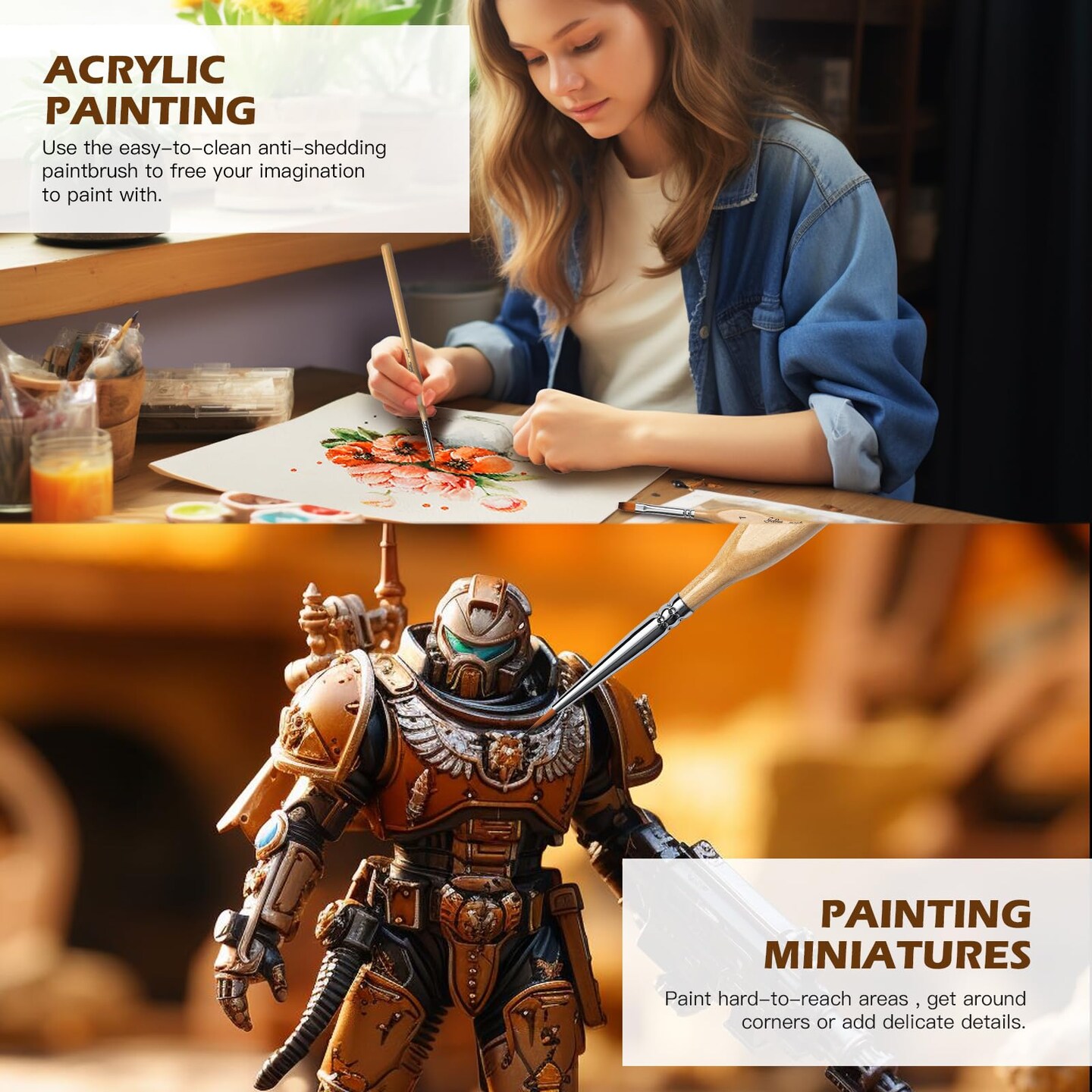 Golden Maple Miniature Paint Brushes, 15PC Model Brushes Micro Detail Paint Brush Set, Fine Detailing for Acrylics, Oils, Watercolors & Paint by Number, Figurine (Wood Color)