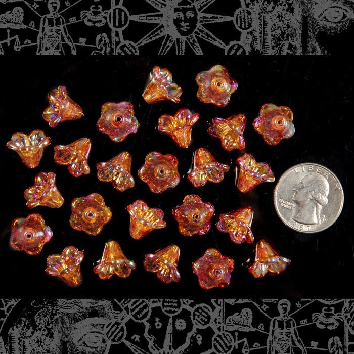 Golden Red Plastic Flower Caps - Set of Twenty-Four - PLC1