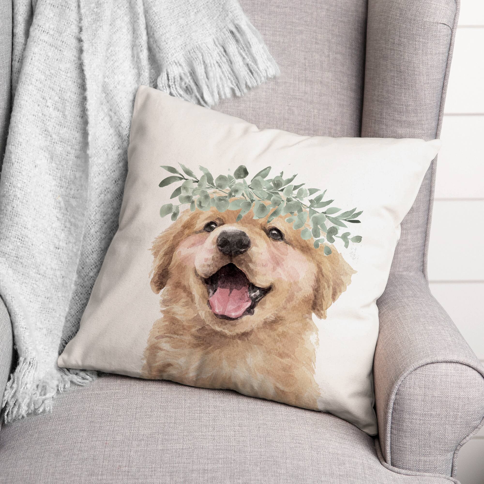Golden Retriever With Leaves 18" x 18" Throw Pillow