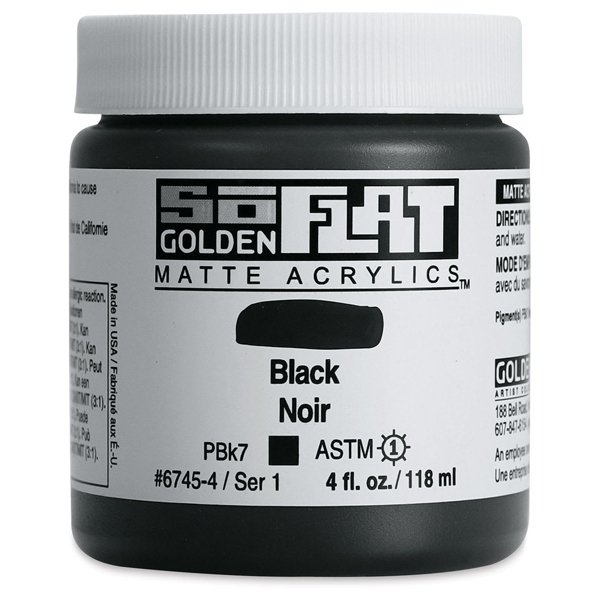 Golden SoFlat Matte Acrylic Paint - Black, 118 ml, Jar