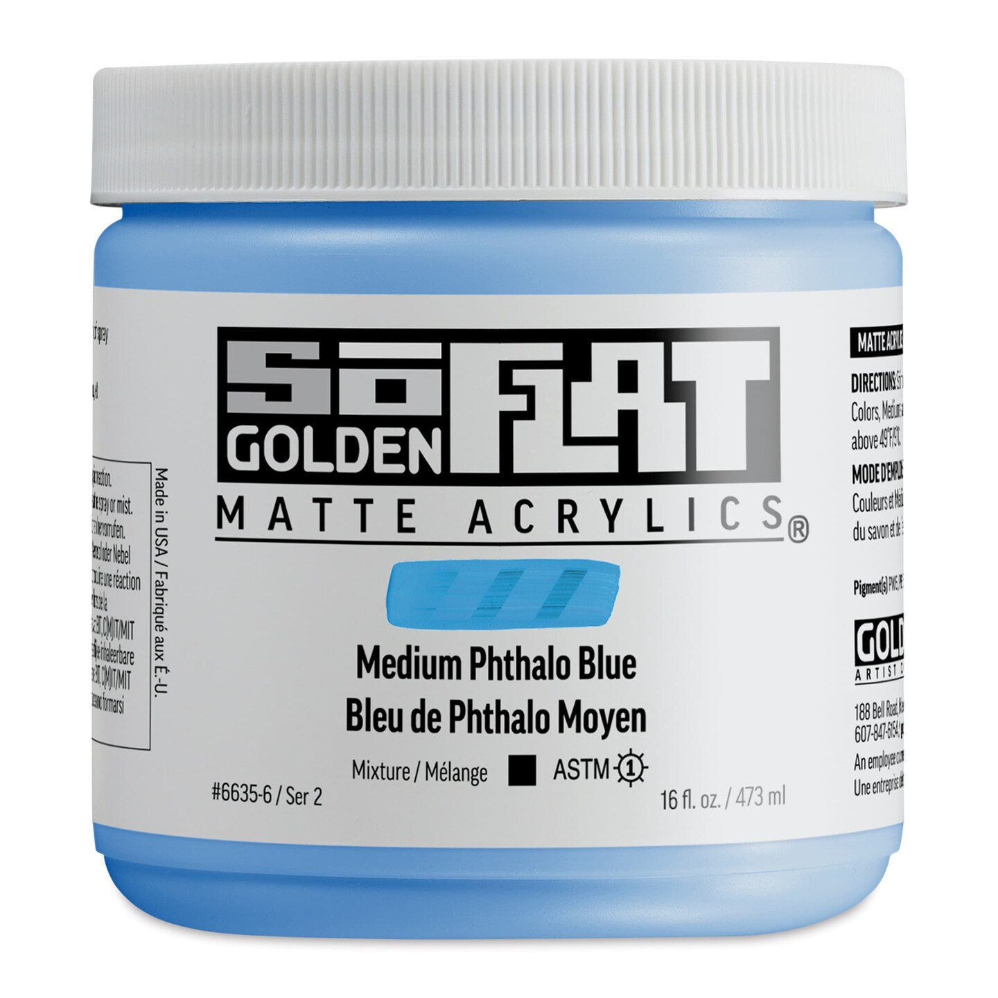 Golden SoFlat Matte Acrylic Paint - Medium Phthalo Blue, 473 ml, Jar