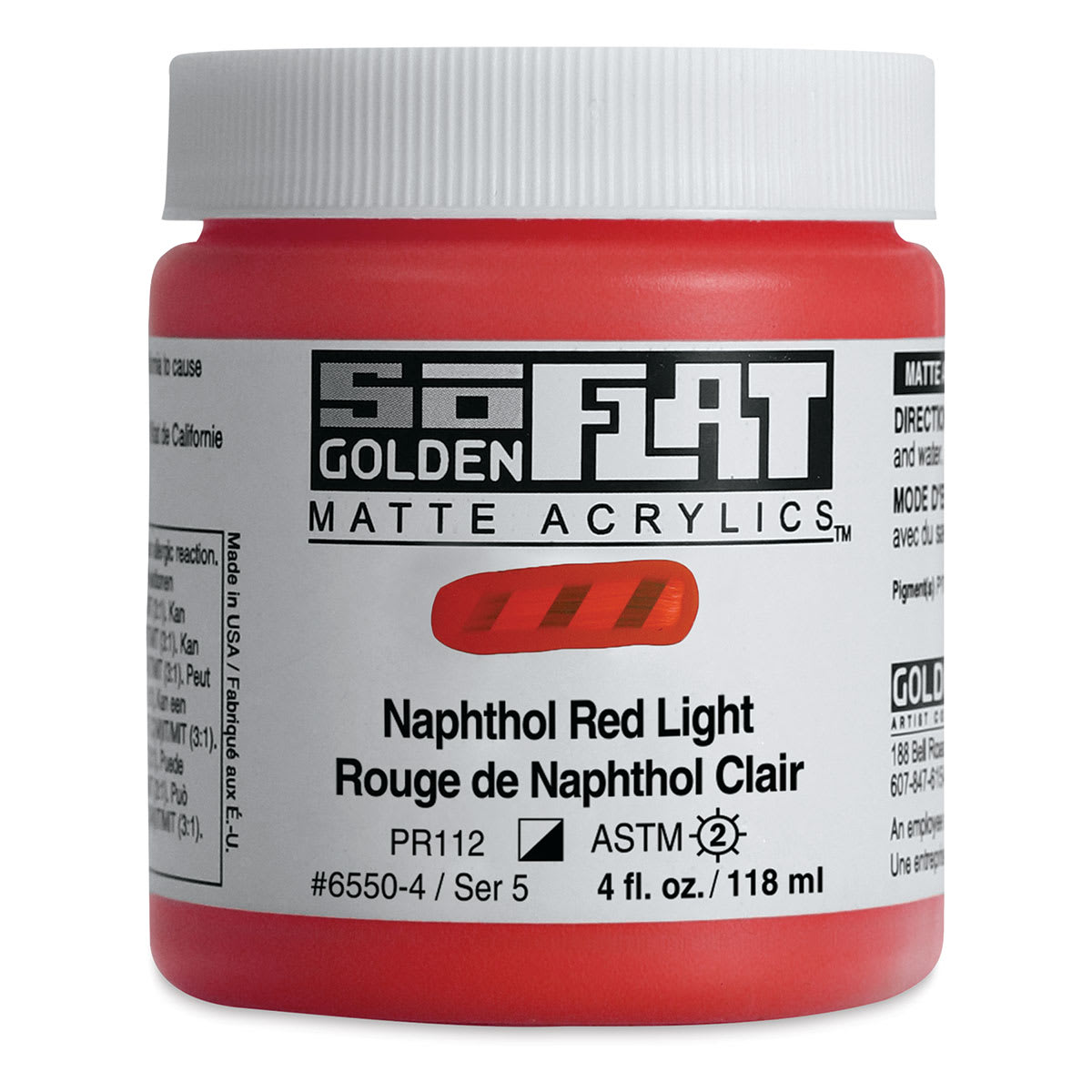 Golden SoFlat Matte Acrylic Paint - Naphthol Red Light, 118 ml, Jar