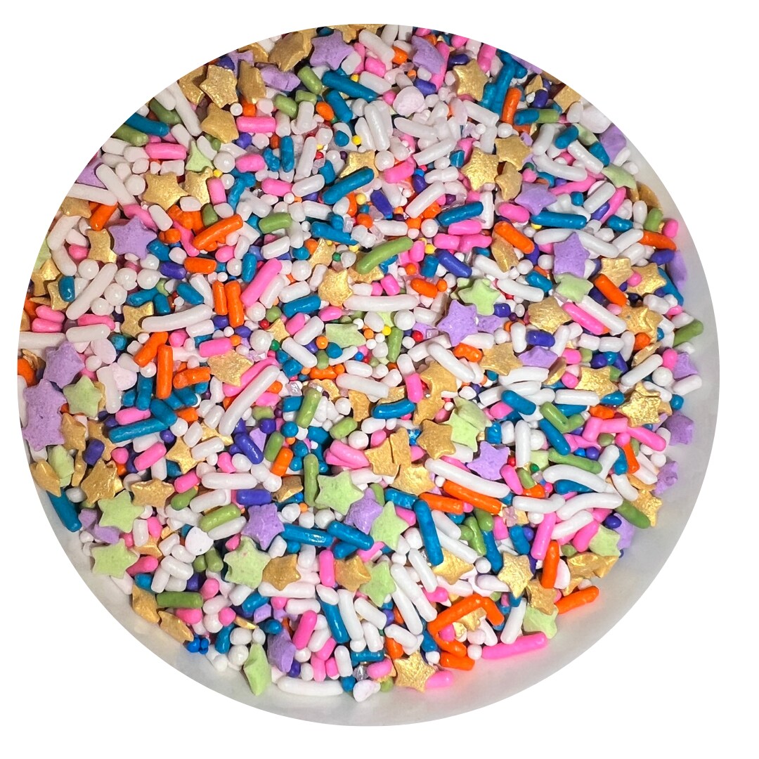 Golden Stardust Sprinkle Mix – Easter & Birthday Cake Sprinkles, Pastel Star Confetti, Gold Star Baking Mix