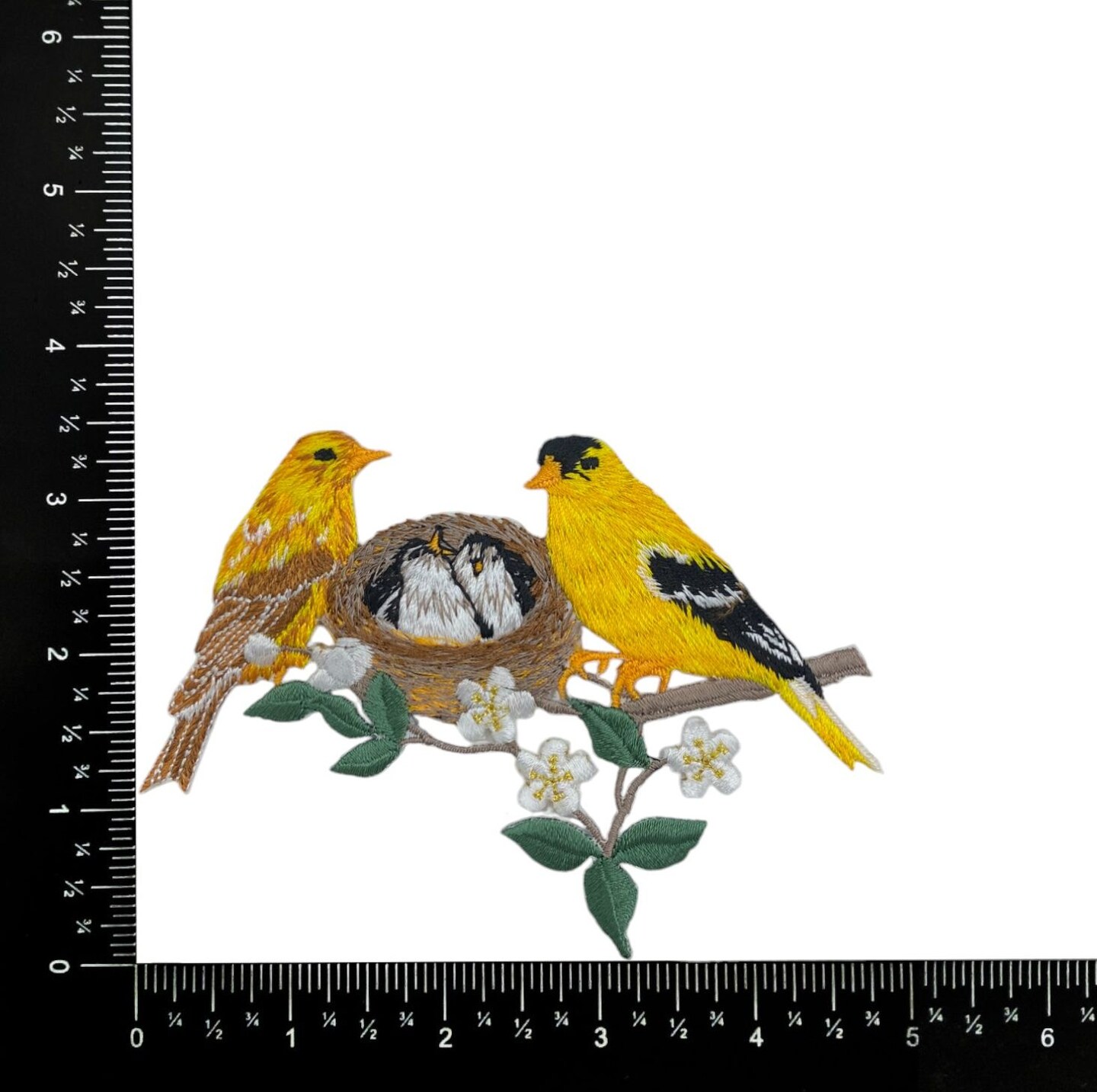 Goldfinch Nest, Birds, Embroidered, Iron on Patch