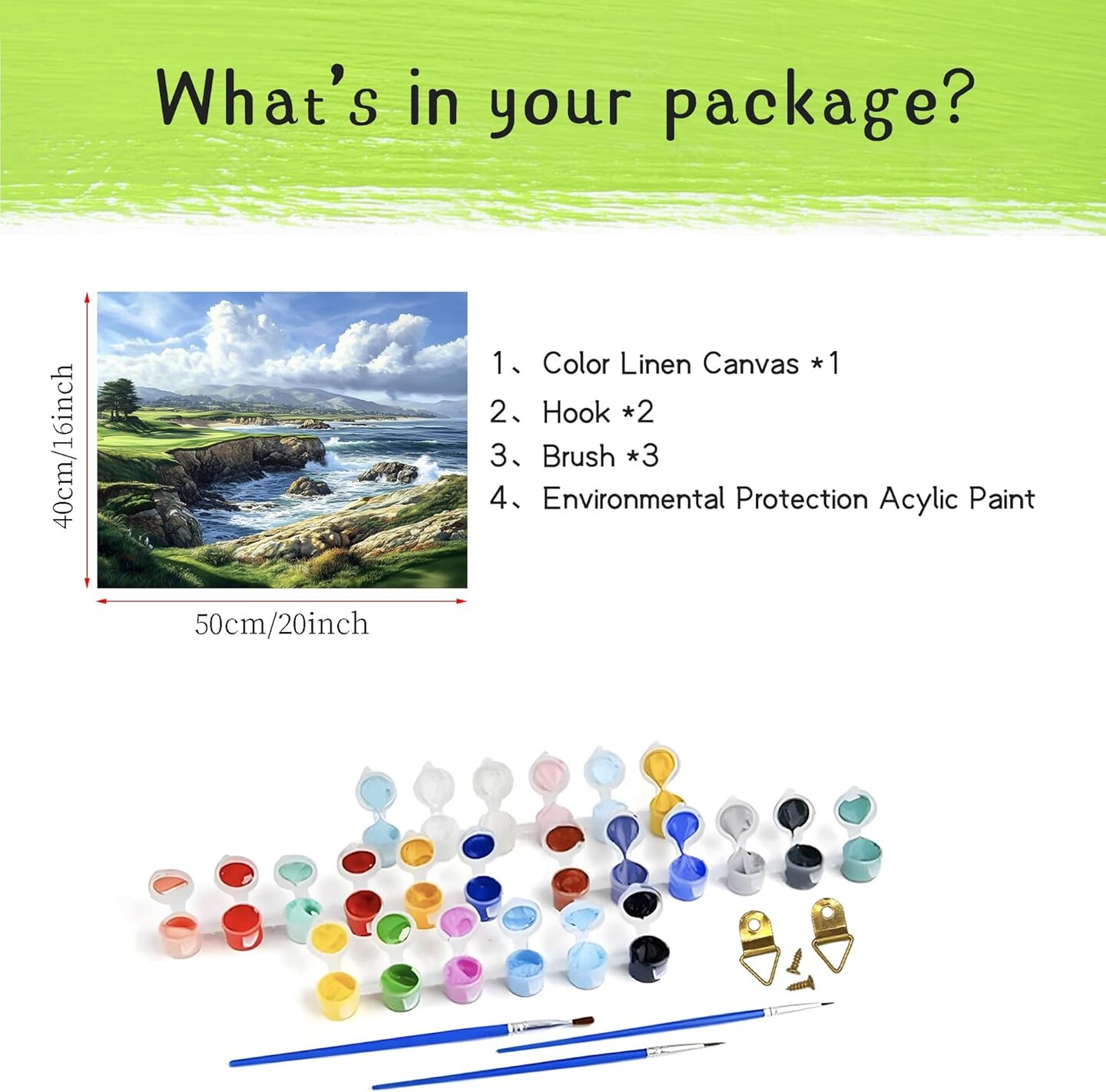 Golf Course Paint by Numbers for Adult Beginner, Beach Landscape (16x20inch)