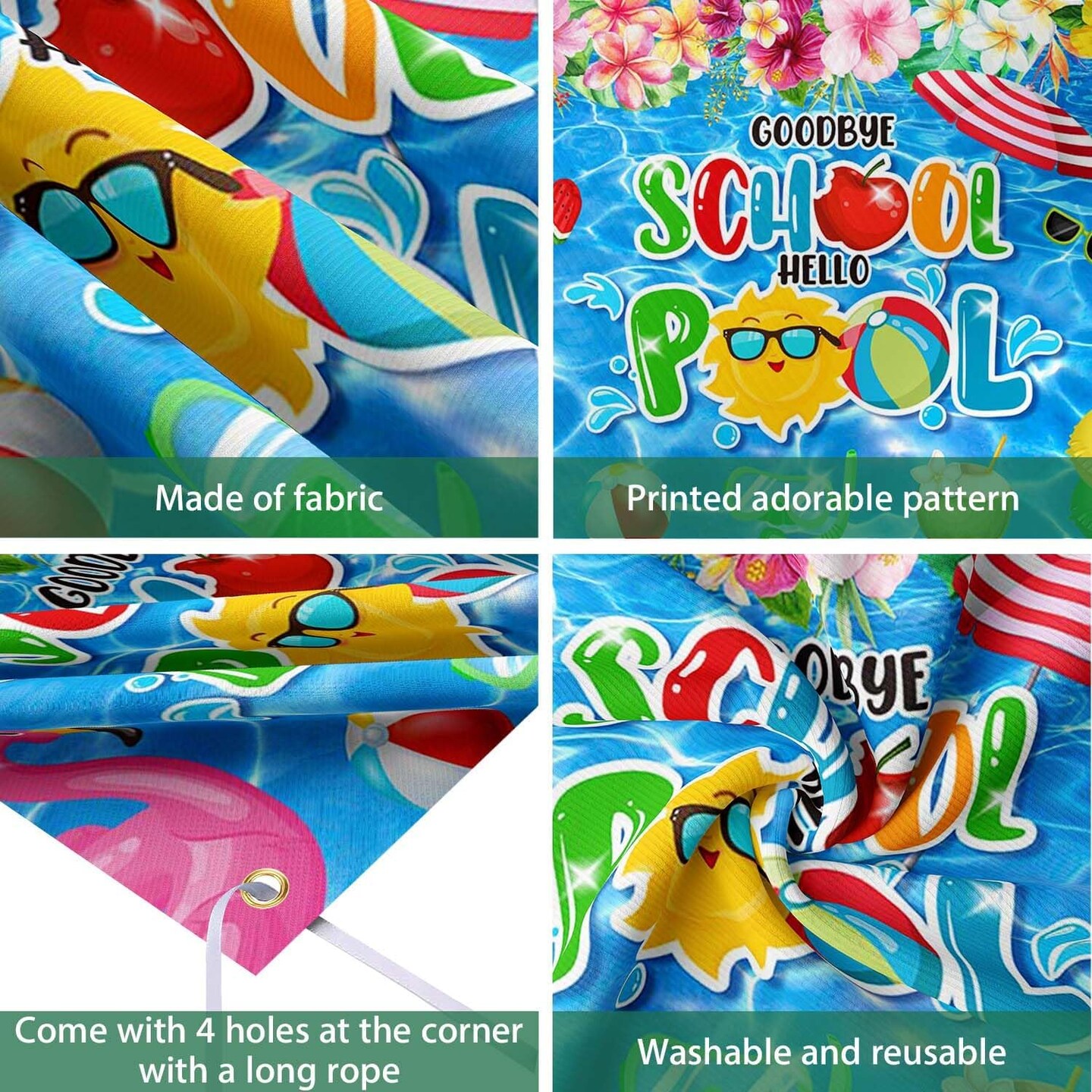 Goodbye School Hello Pool Banner Summer Pool Splish Splash Tropical Floral Backdrop End of School Year Party Decorations Banner Photo Booth Props